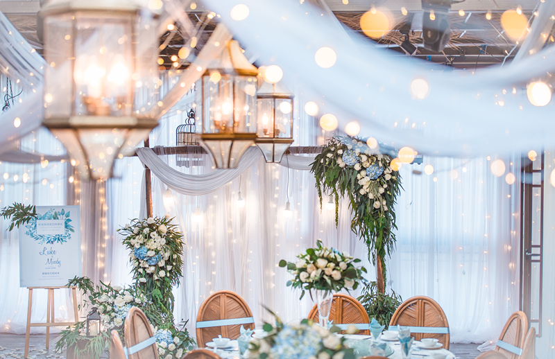 • 纯西式婚礼 浅蓝色主题户外室内婚礼布置
