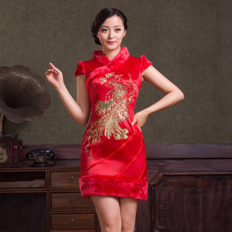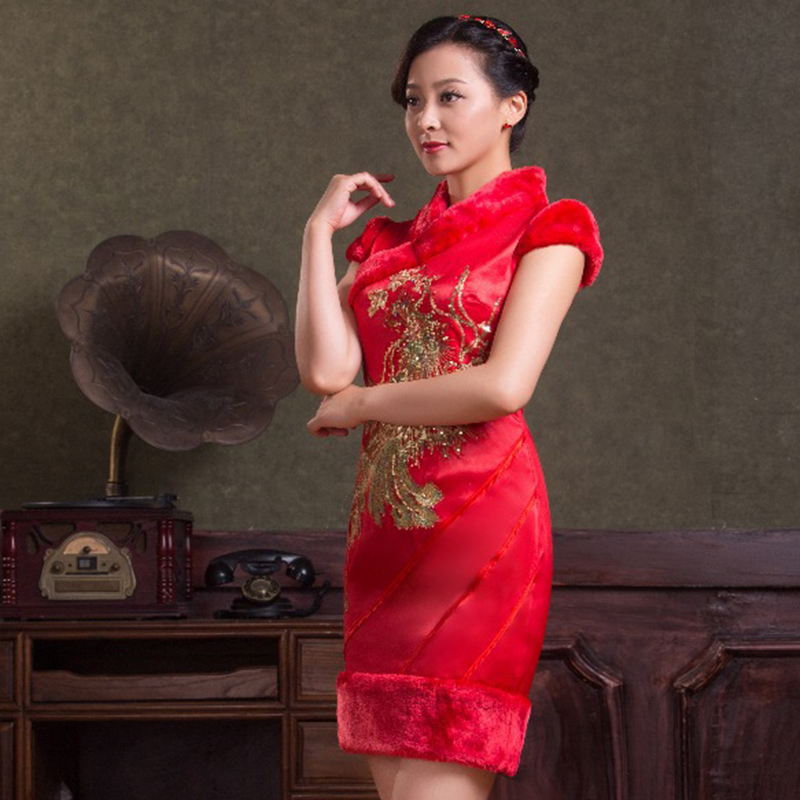 • 【旗袍】2016冬季红色新娘礼服加绒加厚结婚改良旗袍239