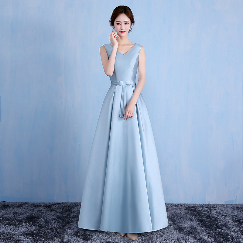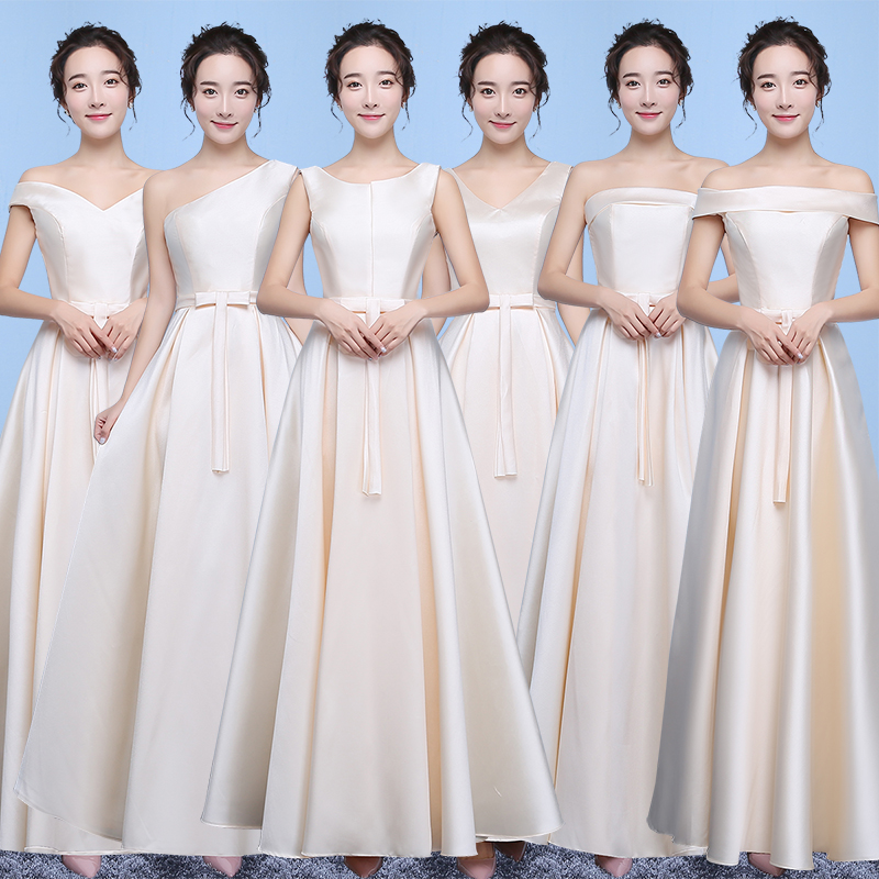 缎面伴娘服长款新款韩式修身显瘦伴娘团姐妹裙年会晚礼服