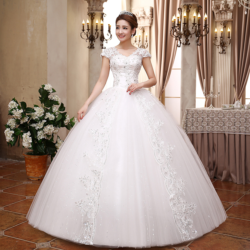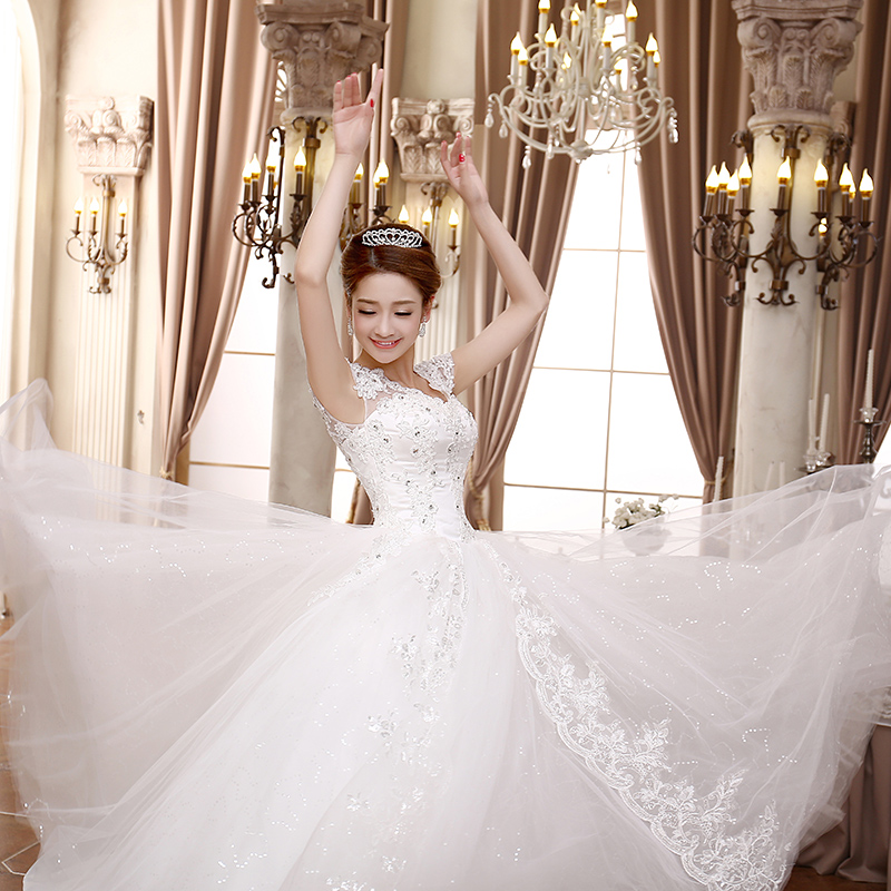 • 送三件套2017新款秋冬韩式新娘公主甜美一字肩婚纱MK56