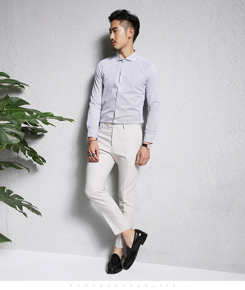 • 新品男士休闲衬衣修身长袖条纹衬衫欧美简约温莎领寸衬