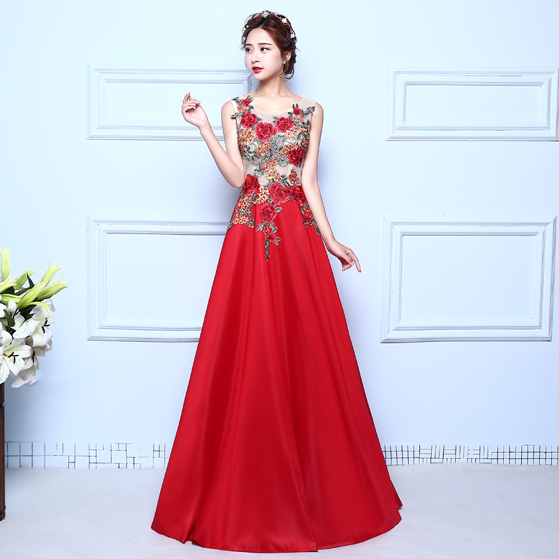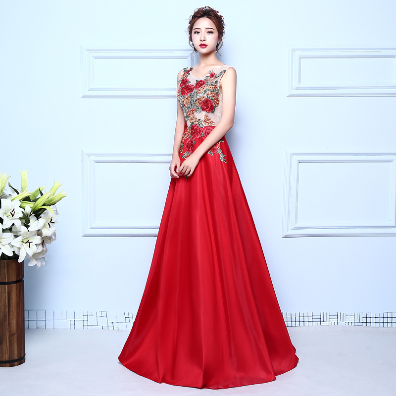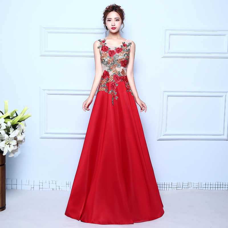 敬酒服新娘长款红色订婚晚礼服宴会主持人修身显瘦新款3