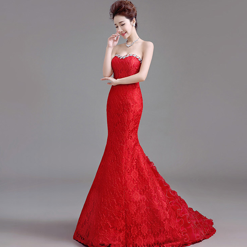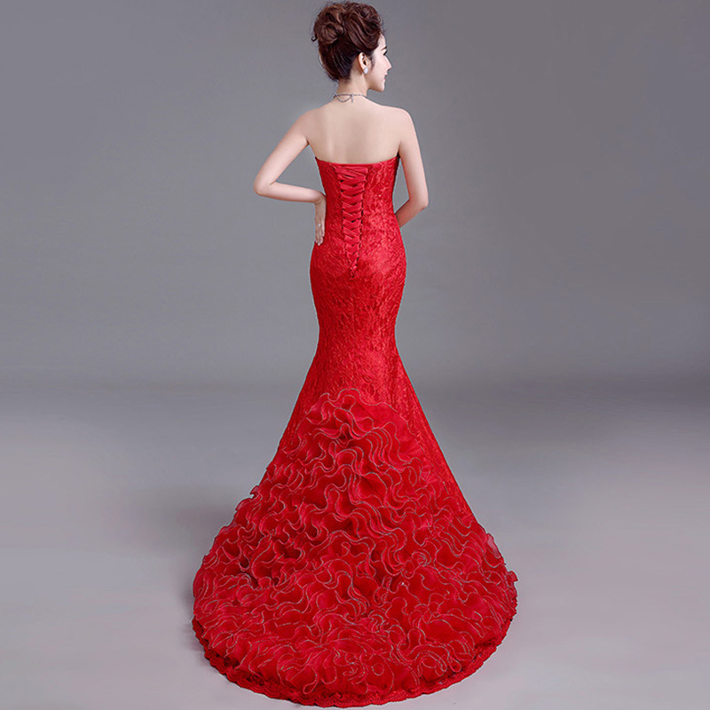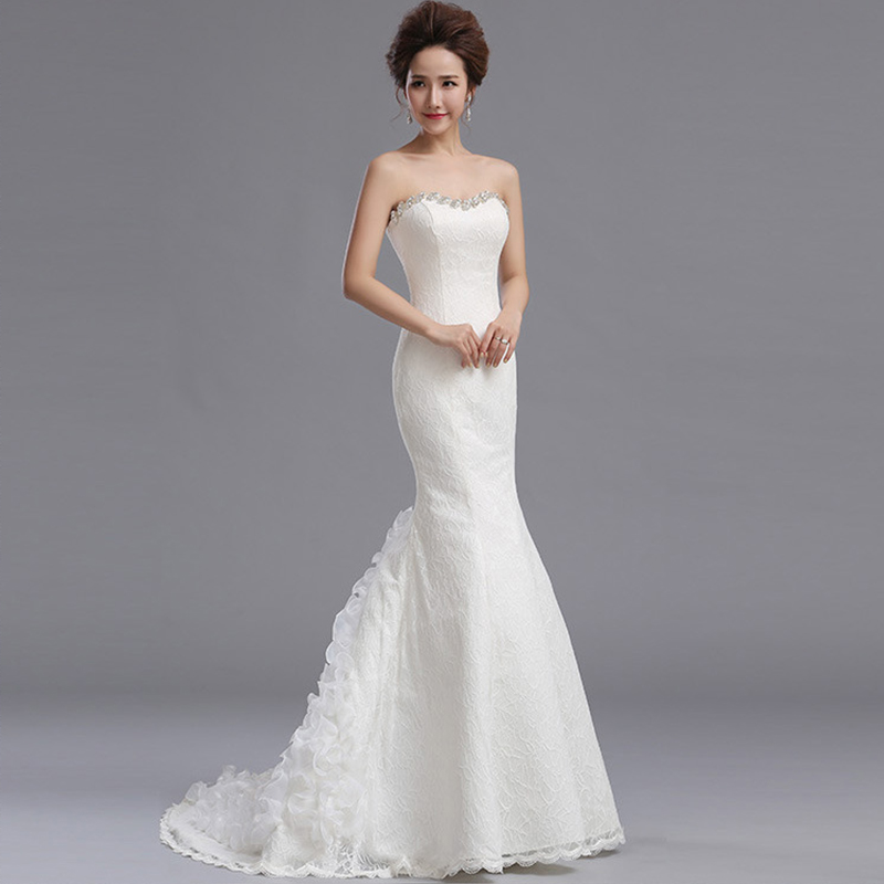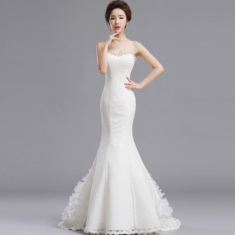 婚纱礼服2017新款韩式抹胸蕾丝修身婚纱收腰鱼尾婚纱小拖尾7