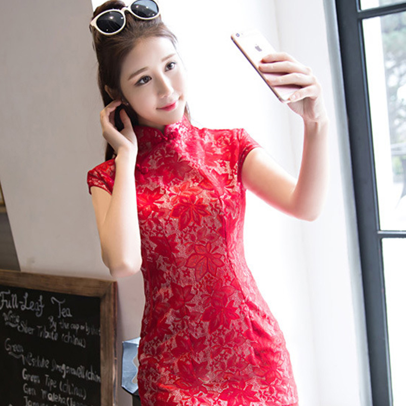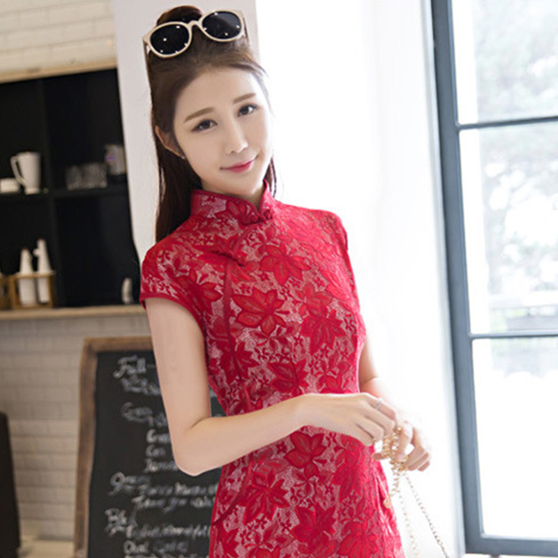 • 2017春夏季新款复合蕾丝旗袍 复合蕾丝短款旗袍680