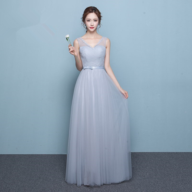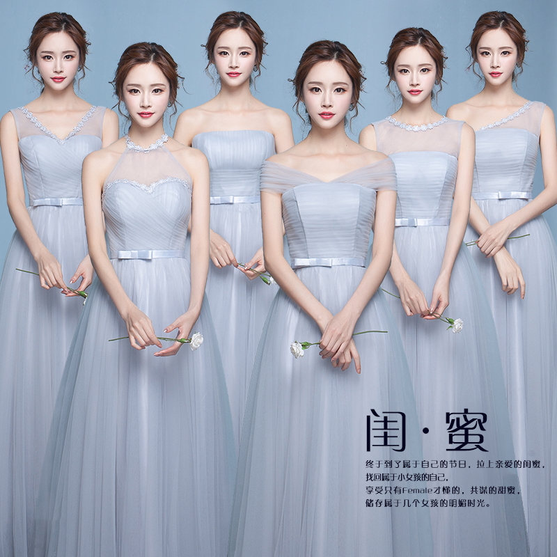 • 伴娘服长款新款韩式灰色伴娘团礼服姐妹裙显瘦宴会晚礼服长裙