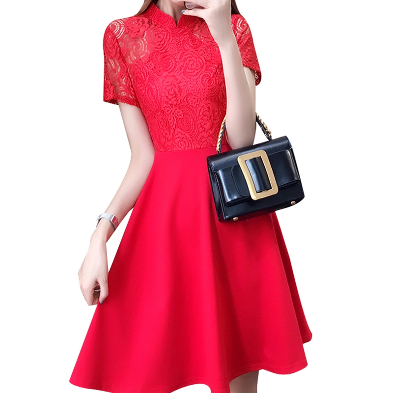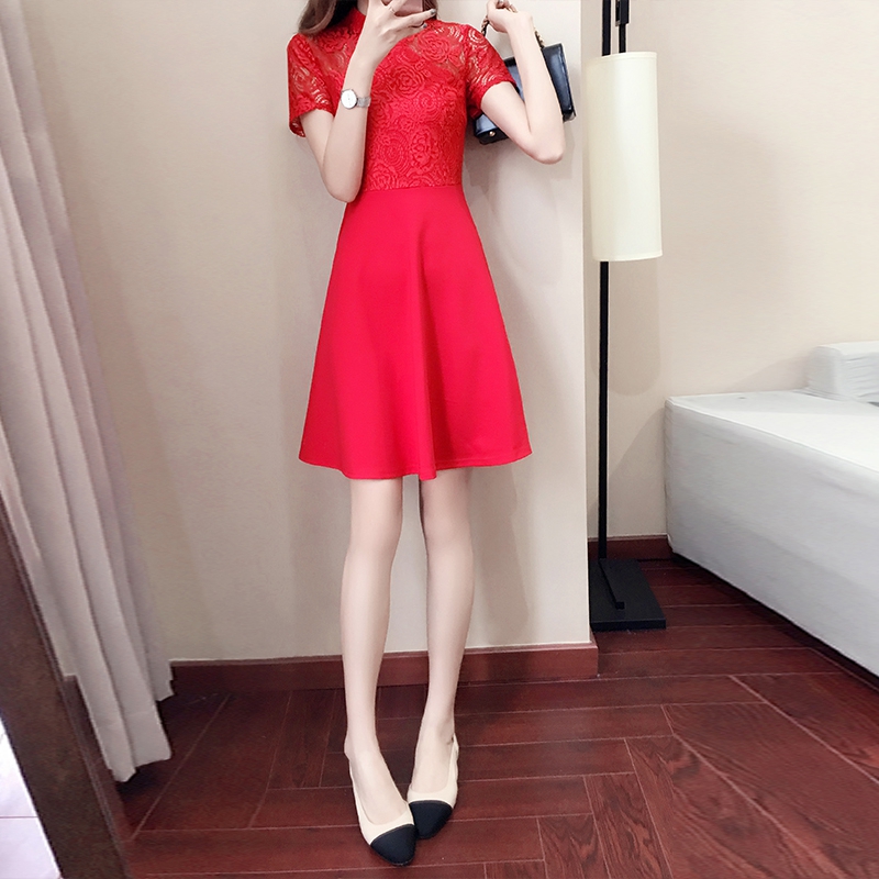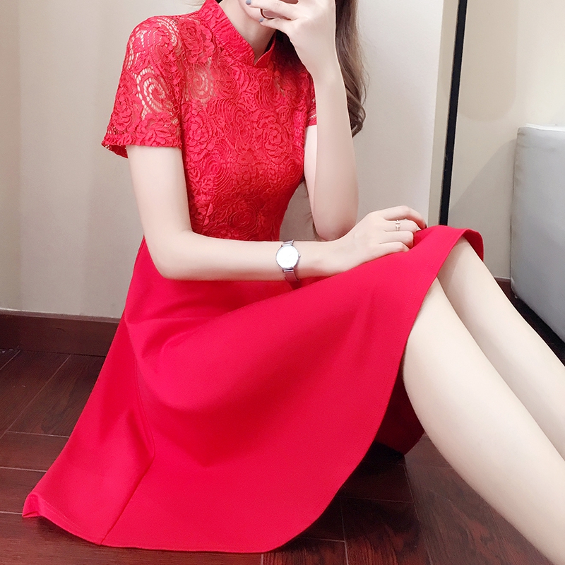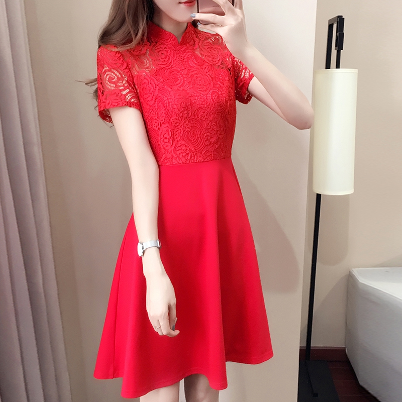 • 敬酒服新娘红色新款立领蕾丝连衣裙短款孕妇回门服结婚礼服女
