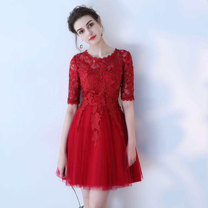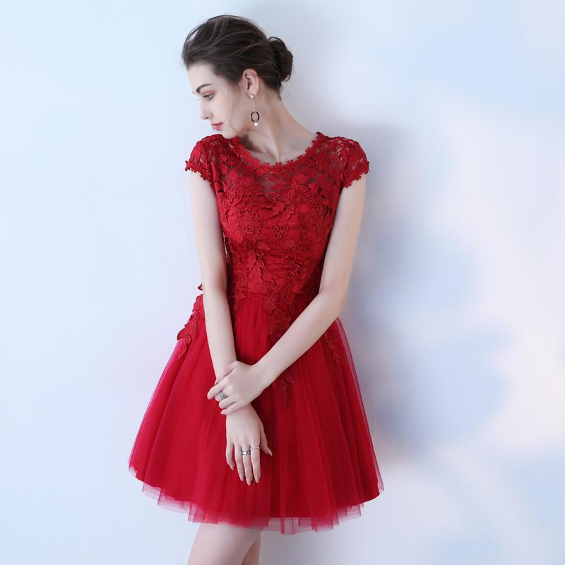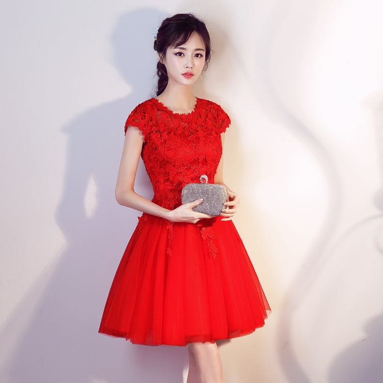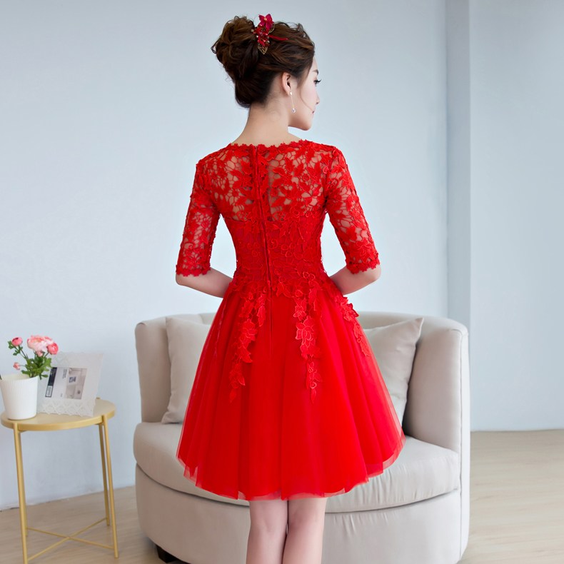 • 2017夏新款新娘敬酒服结婚回门服修身宴会连衣裙红色显瘦短款