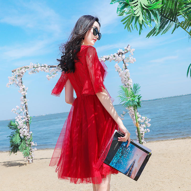 敬酒服新娘春季结婚新款韩版礼服短款红色公主连衣裙短袖夏天