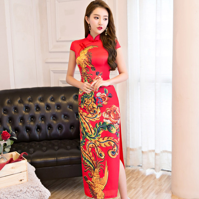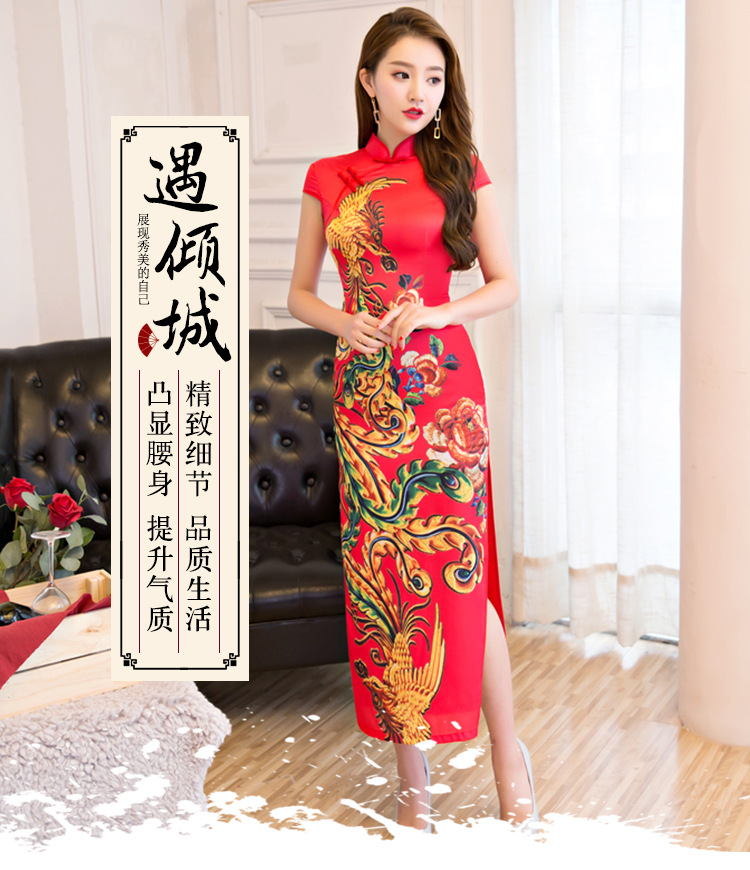 • 新款丝绸长款龙凤印花短袖桑蚕丝改良旗袍373