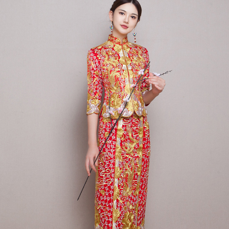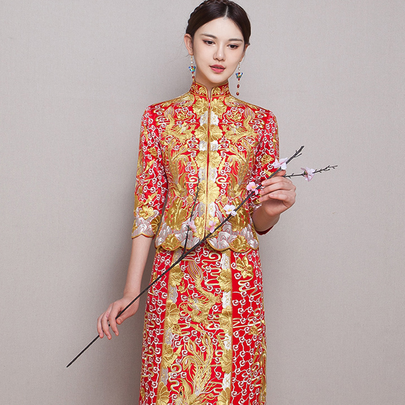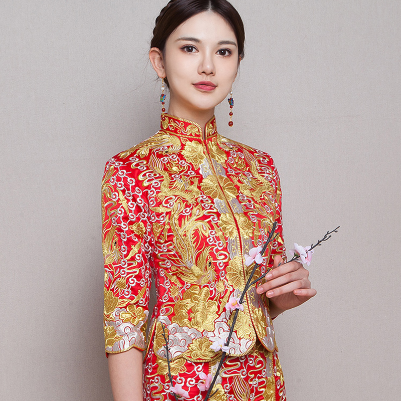 • 秀禾服2017新款春季中式新娘结婚龙凤褂裙红色礼服旗袍697