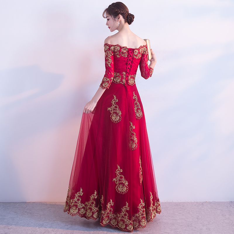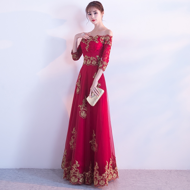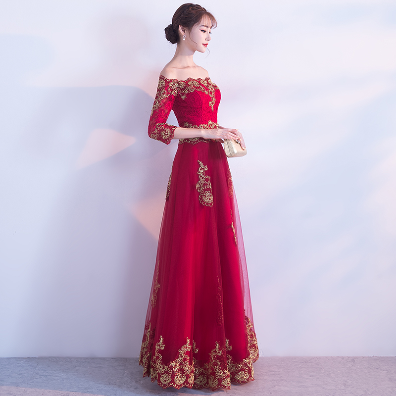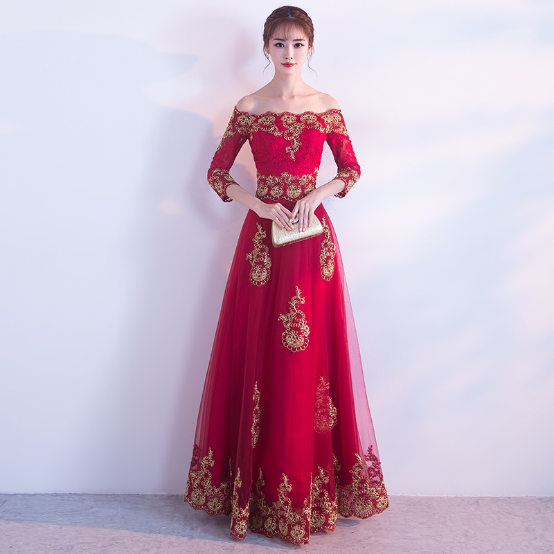 • 结婚新款修身显瘦齐地红色礼服女