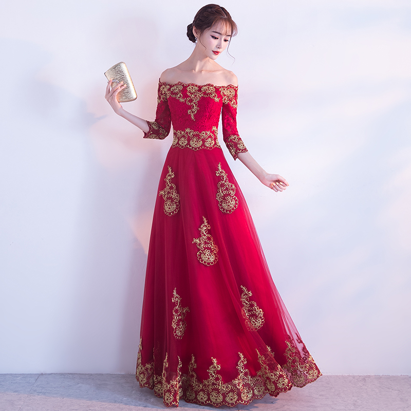结婚新款修身显瘦齐地红色礼服女