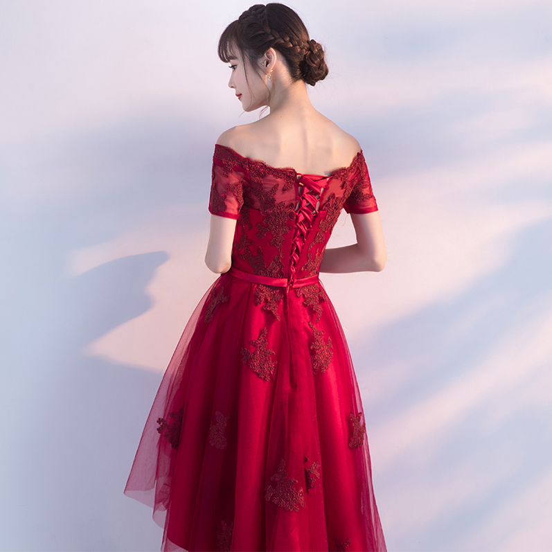• 修身显瘦!2017新款夏季一字肩修身结婚礼服连衣裙前短后长