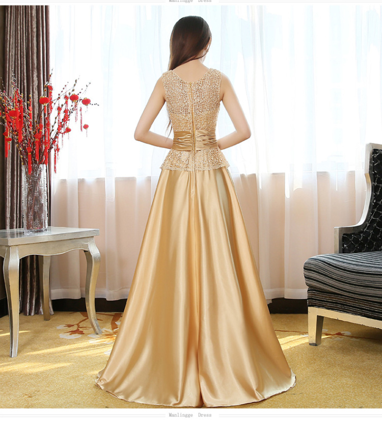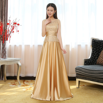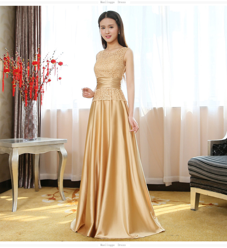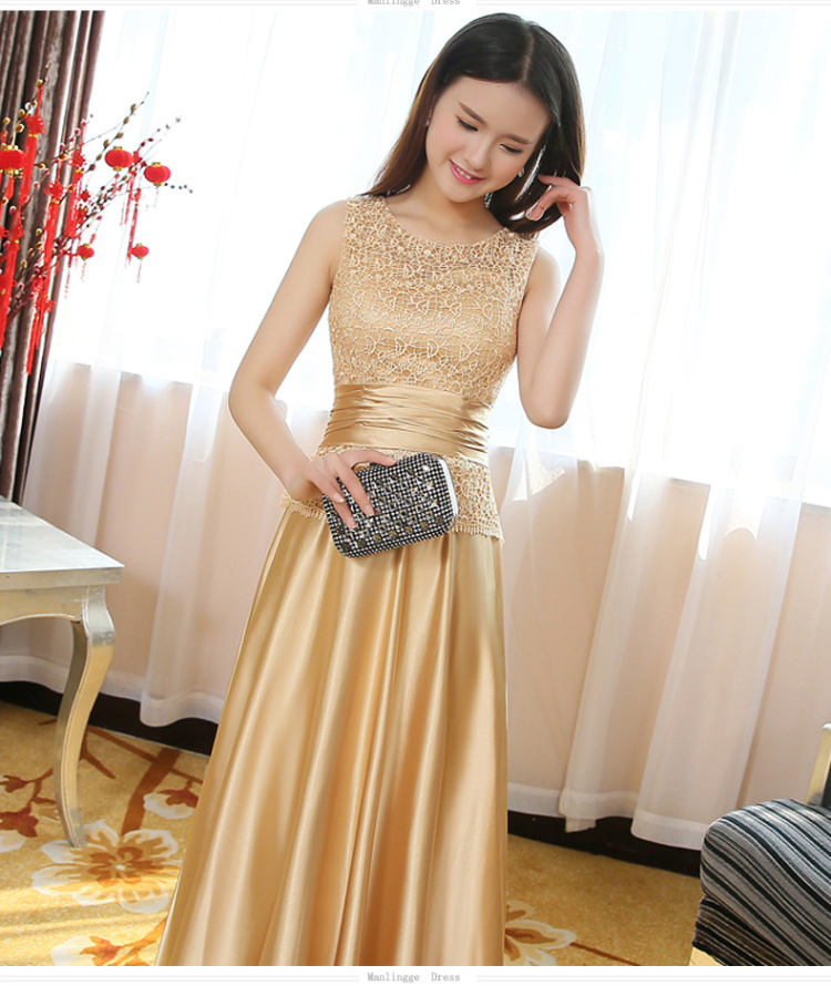 • 敬酒服2017春季新款包肩长款金色新娘结婚婚礼修身宴会晚礼服