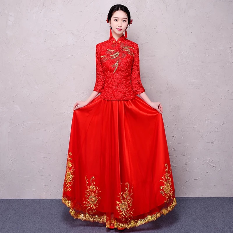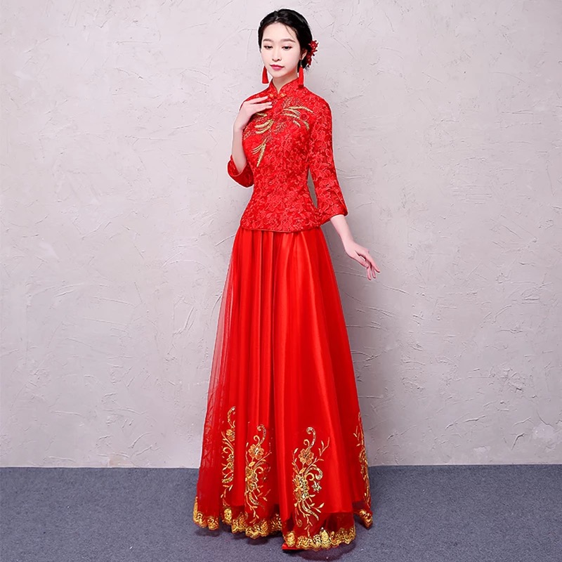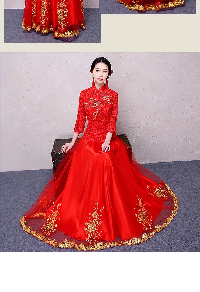 •  敬酒旗袍新娘结婚礼服敬酒服2017新款修身秀禾服中式婚纱