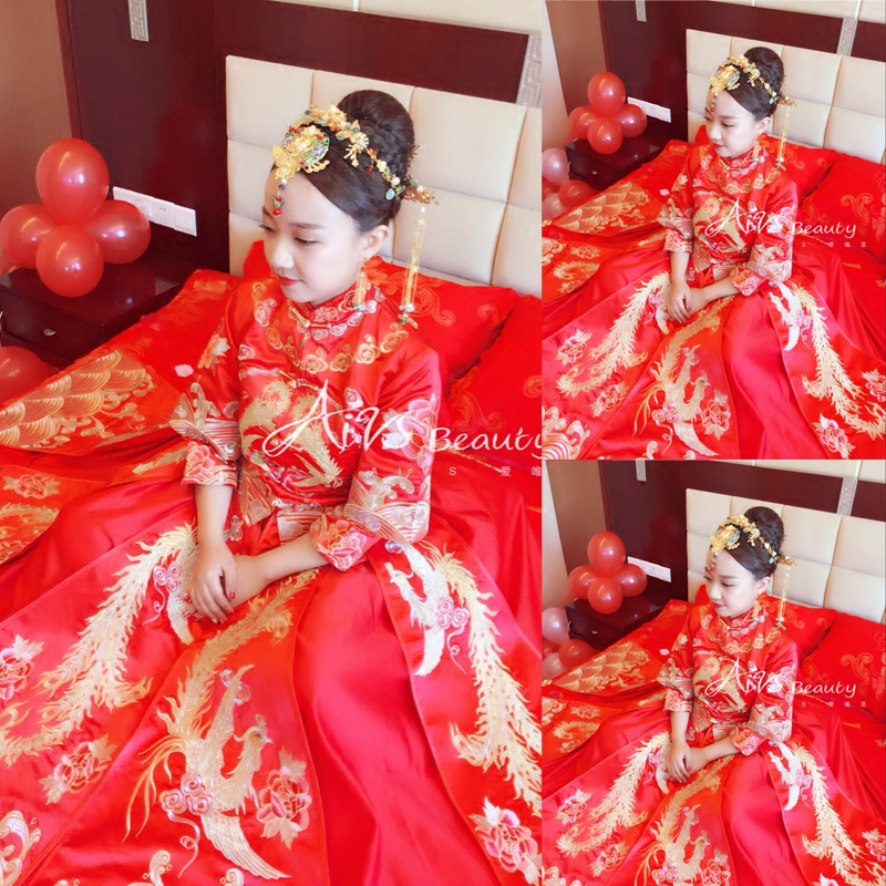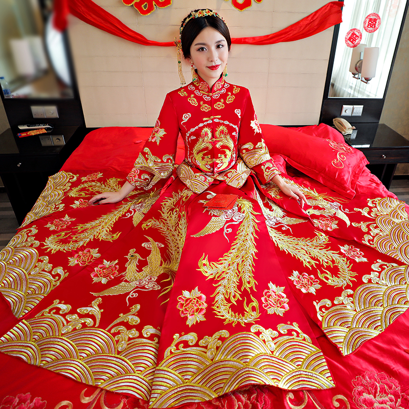 • 新娘中式婚纱新款秀禾服复古旗袍礼服龙凤褂秀和服结婚孕妇敬酒服