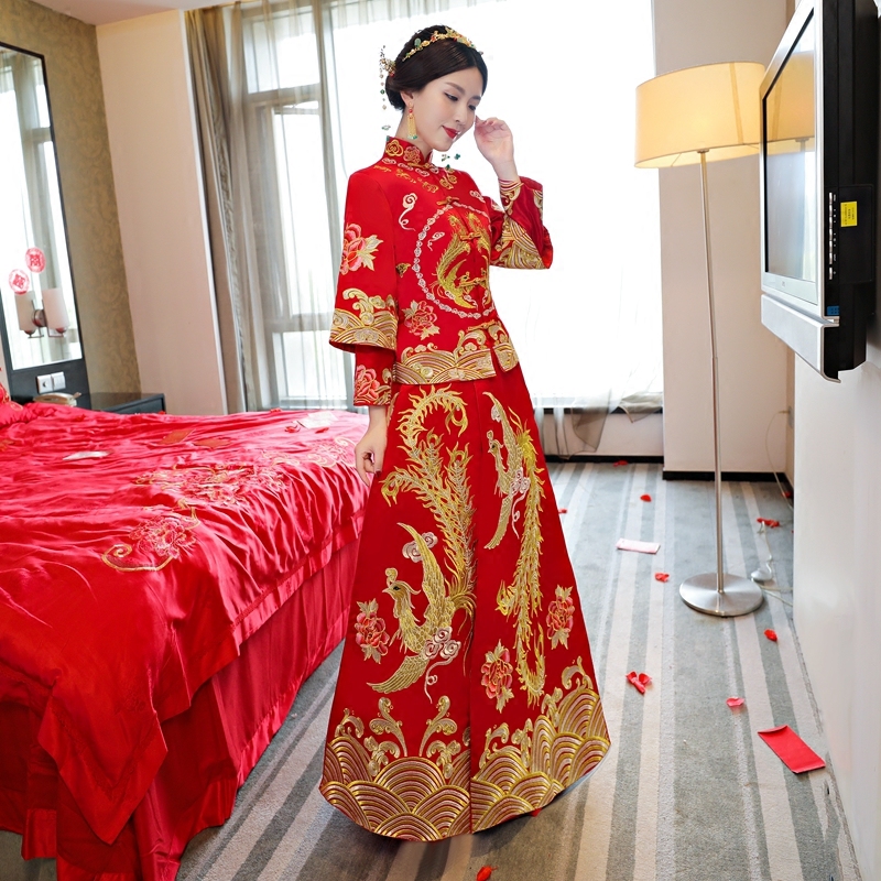 • 新娘中式婚纱新款秀禾服复古旗袍礼服龙凤褂秀和服结婚孕妇敬酒服