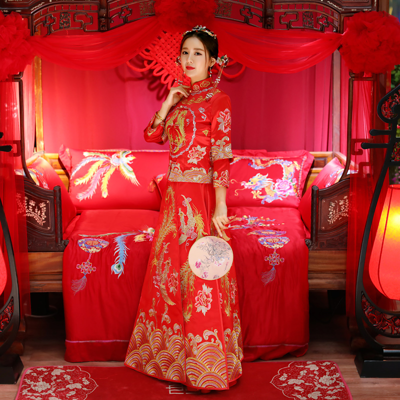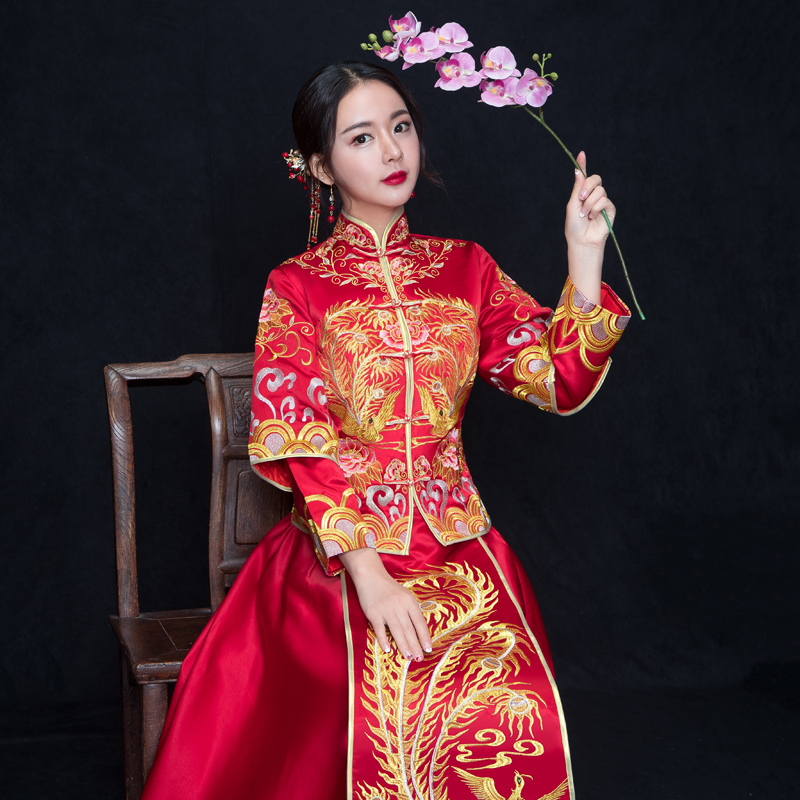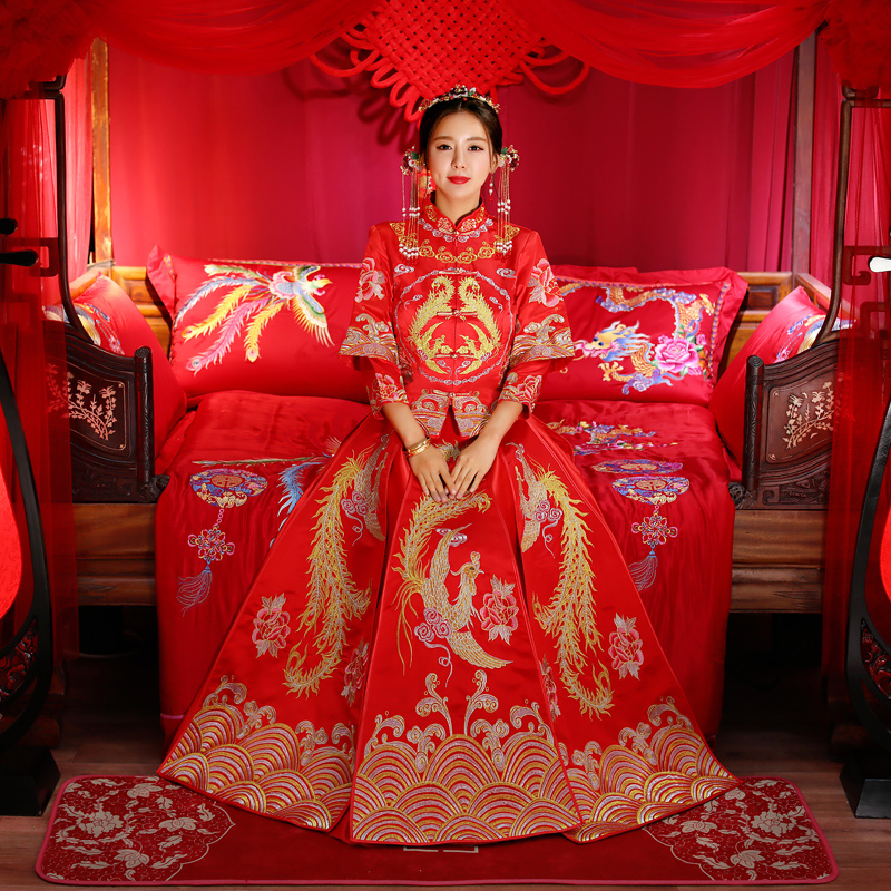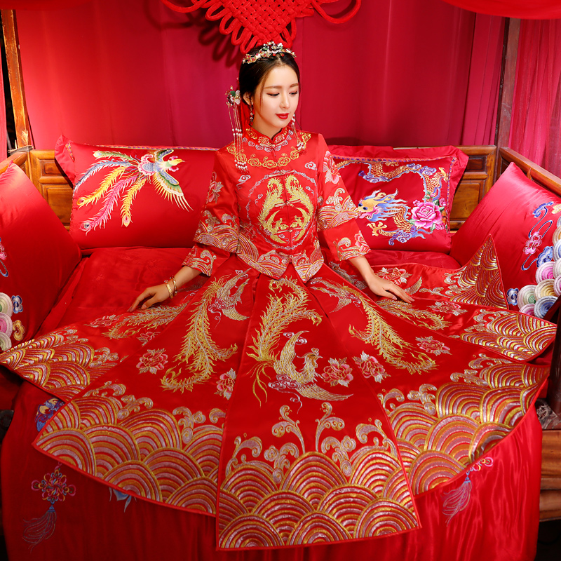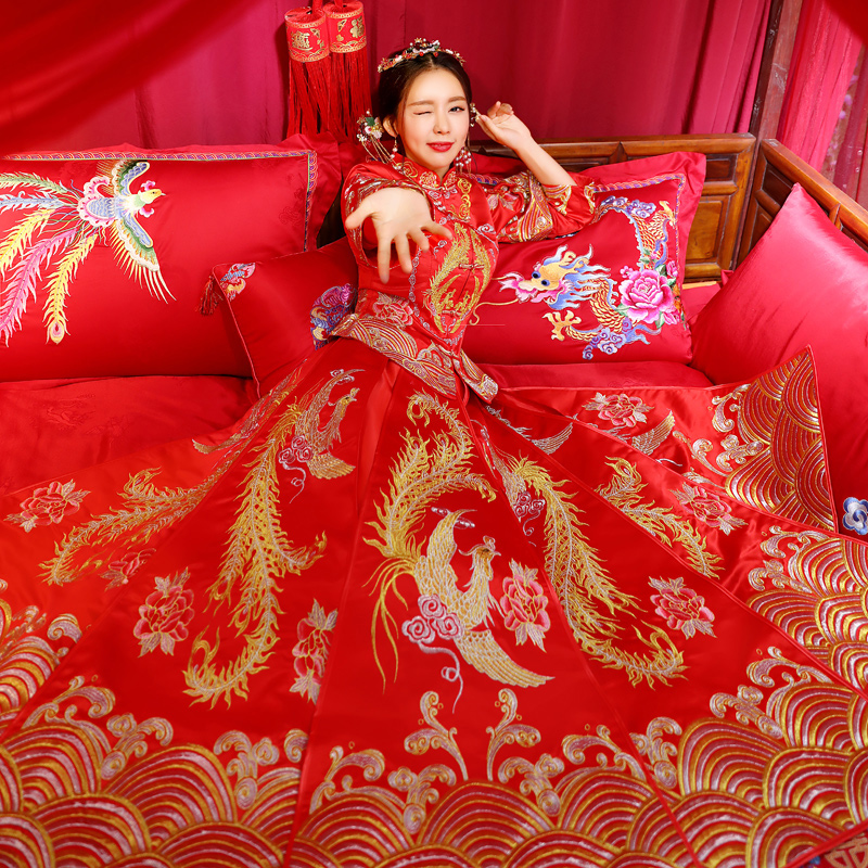 秀禾服新娘结婚礼服新款龙凤褂中式嫁衣红色敬酒服秀和服冬季