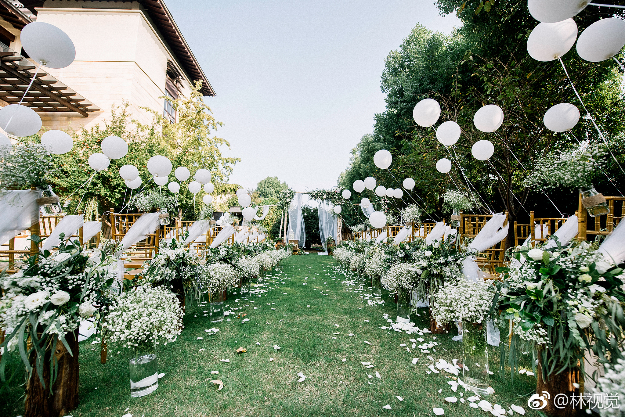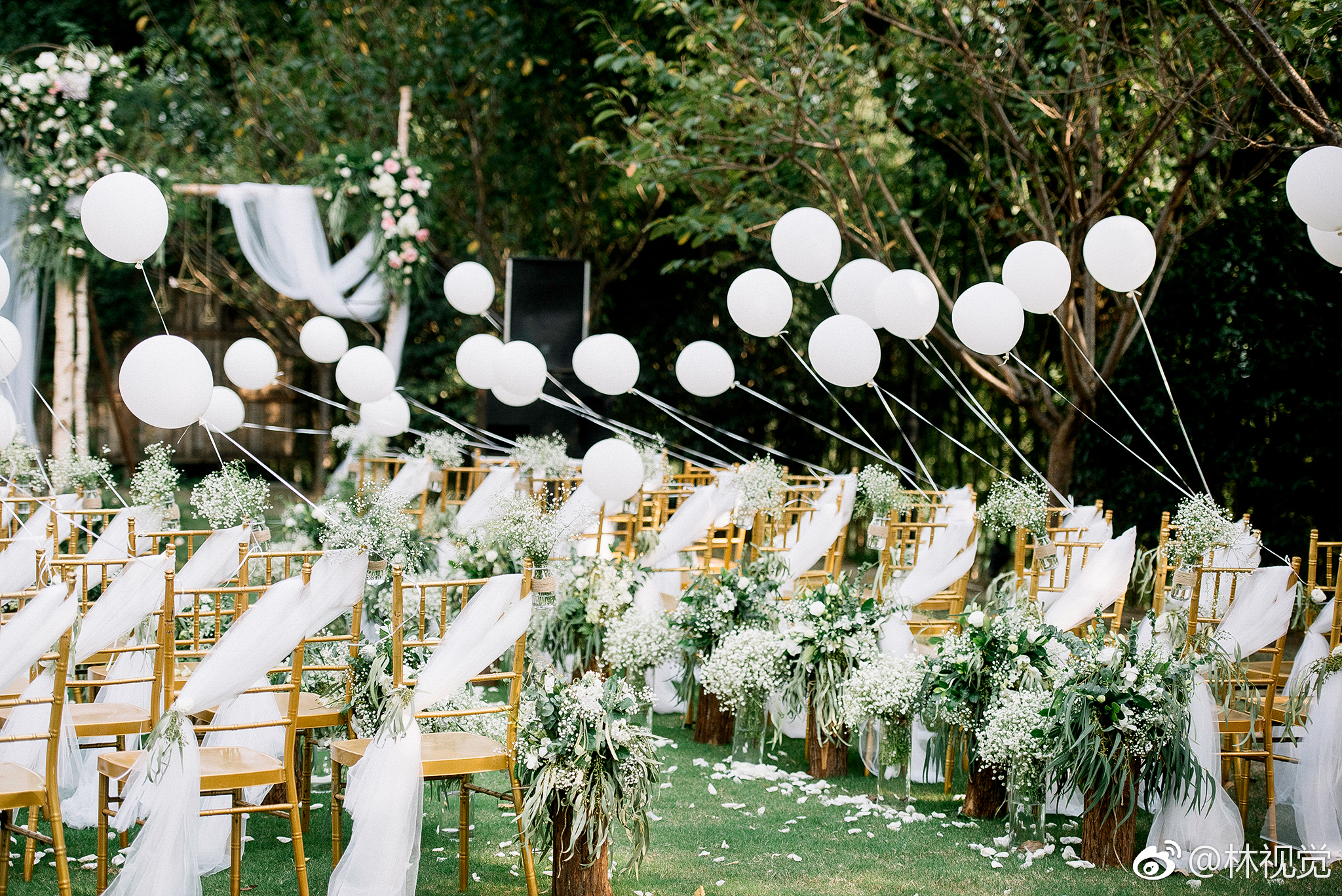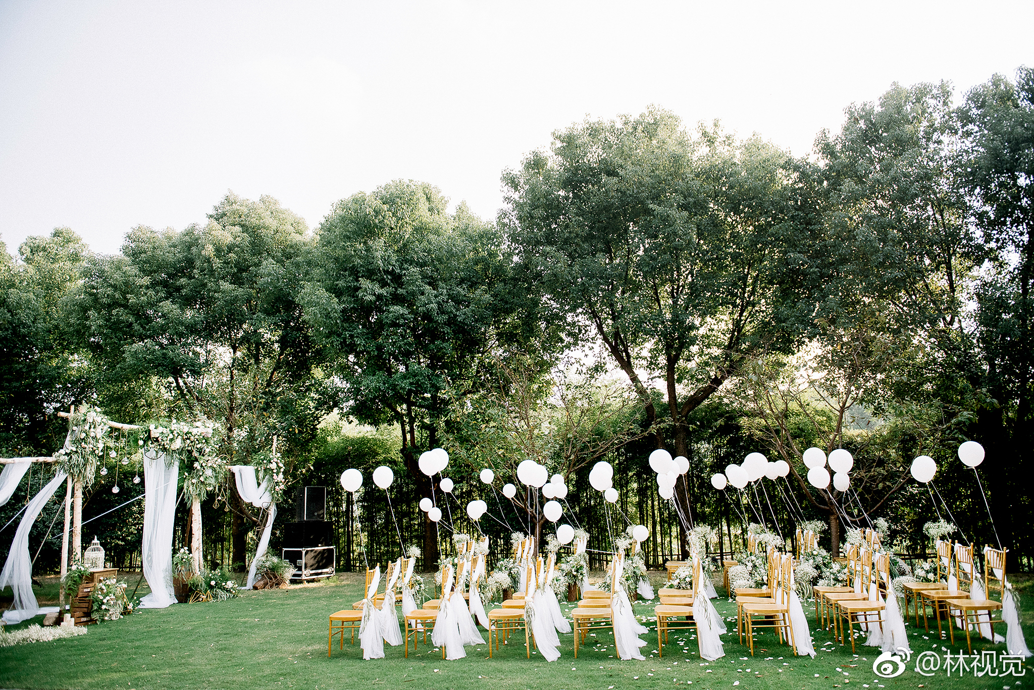 森系户外草坪婚礼--白绿色系婚礼