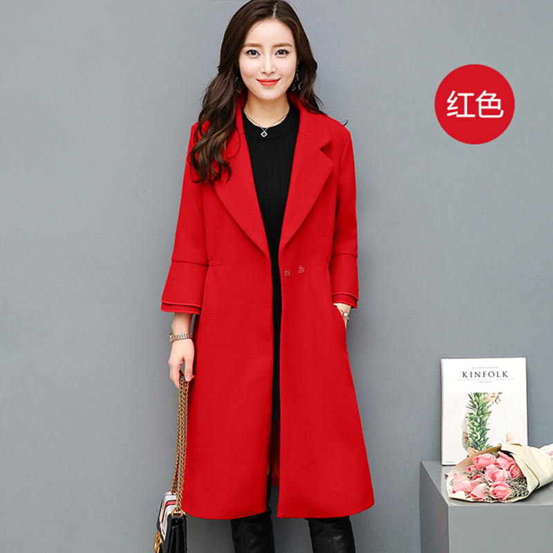 • 新款收腰修身显瘦喇叭袖呢子大衣毛呢外套女秋装667