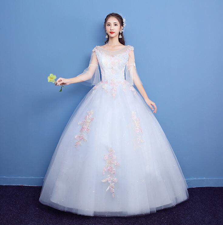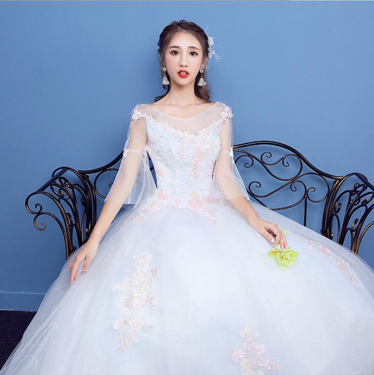• 新娘婚纱礼服爱久久秋新款韩式时尚公主显瘦彩色蕾丝齐地出门纱