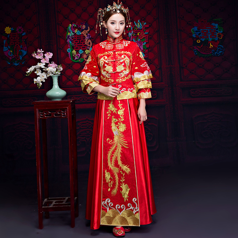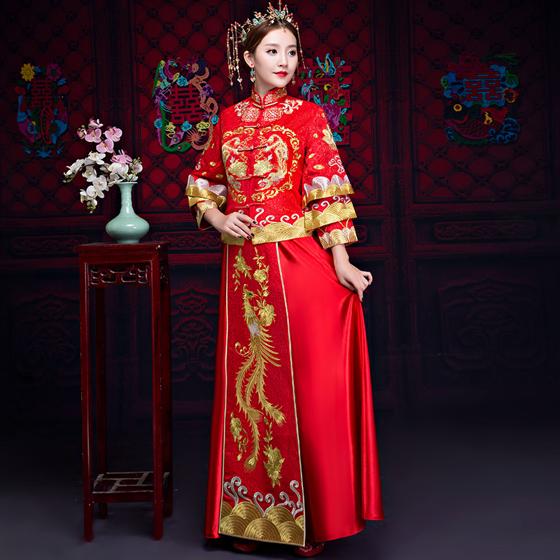 新娘敬酒服旗袍秀禾服2017新款古装中式婚纱礼服中国风修身显