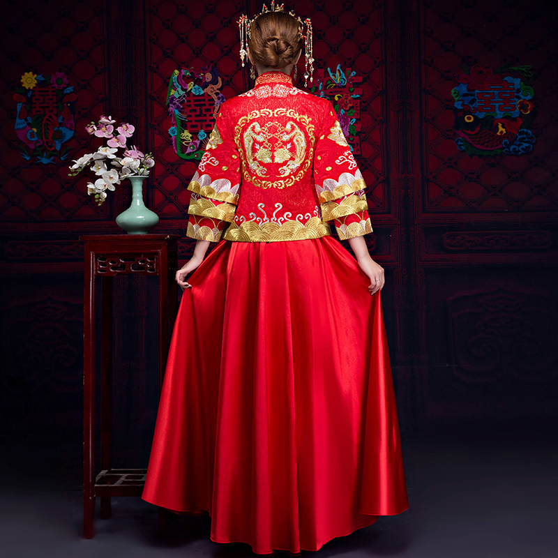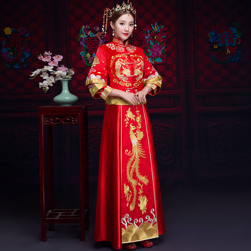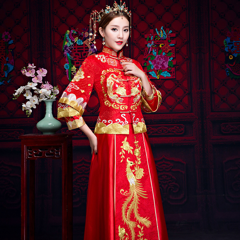 • 新娘敬酒服旗袍秀禾服2017新款古装中式婚纱礼服中国风修身显