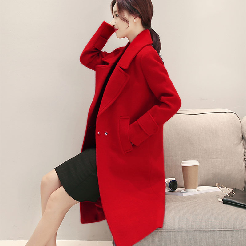 • 呢子大衣女中长款韩版2017秋冬装新款修身妮子加厚315