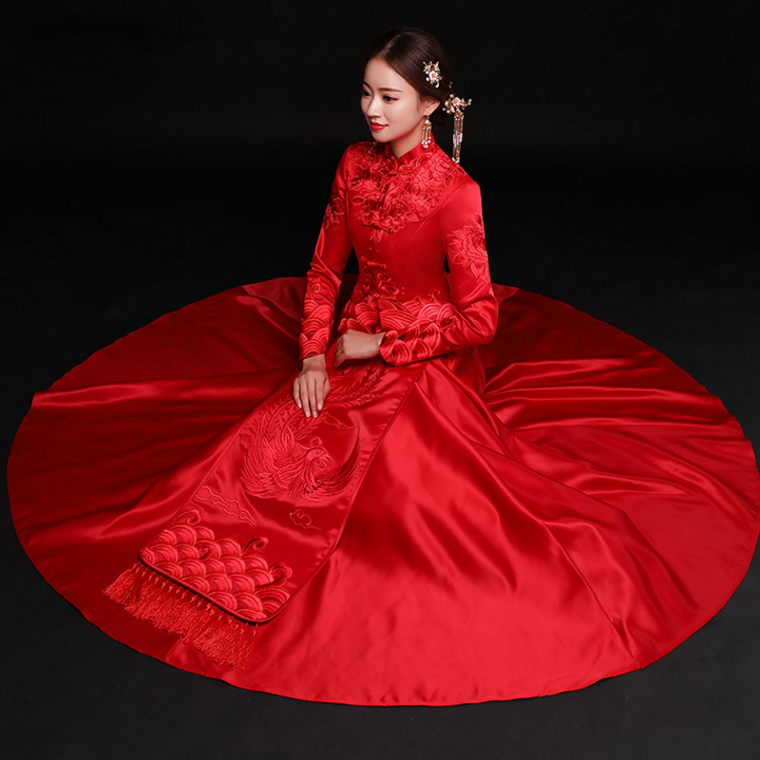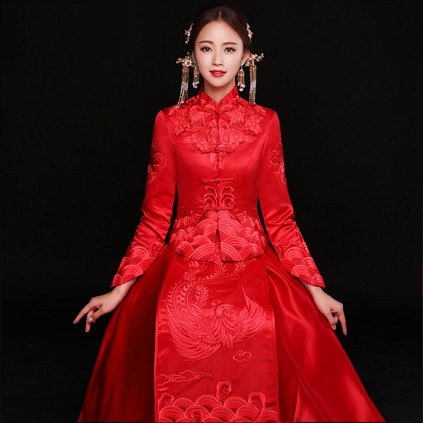 • 送全套配饰!秀禾服新款婚纱中式新娘敬酒服结婚礼服古代嫁衣改良