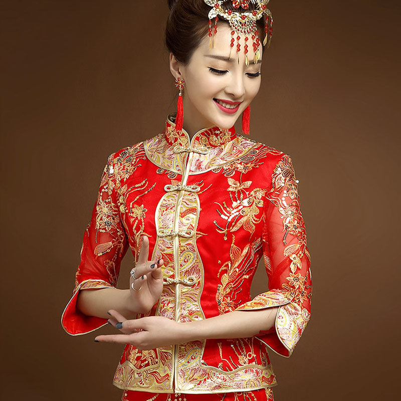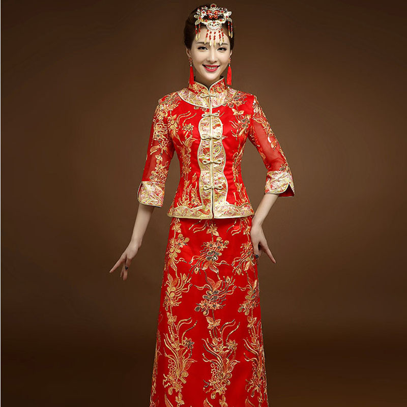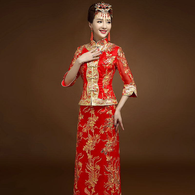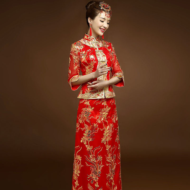 • 新娘敬酒服秀禾服2017新款中式礼服婚纱红色长款新娘961