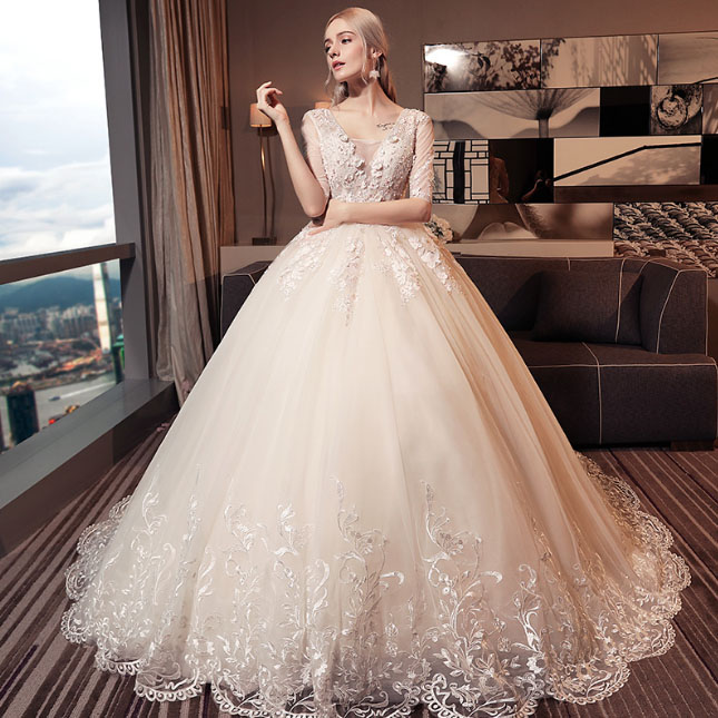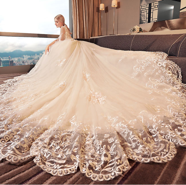 • 修身显瘦!2017新款拖尾韩式简约冬季大码显瘦蕾丝齐地新娘礼
