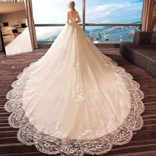 修身显瘦!2017新款拖尾韩式简约冬季大码显瘦蕾丝齐地新娘礼