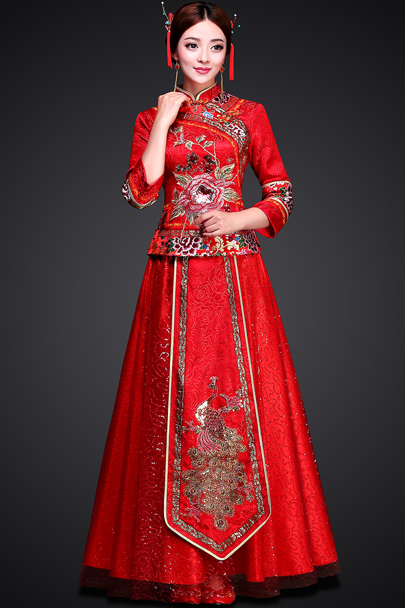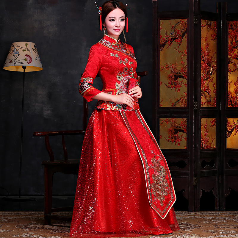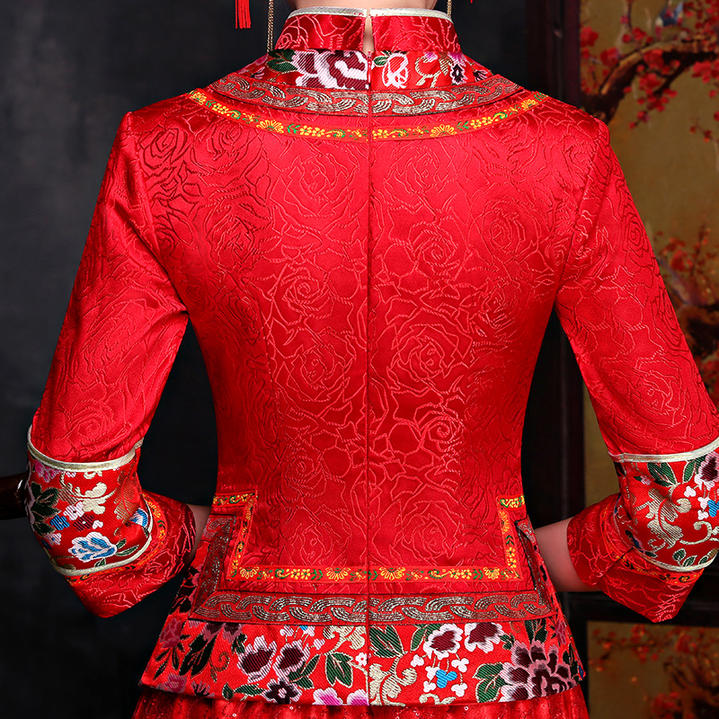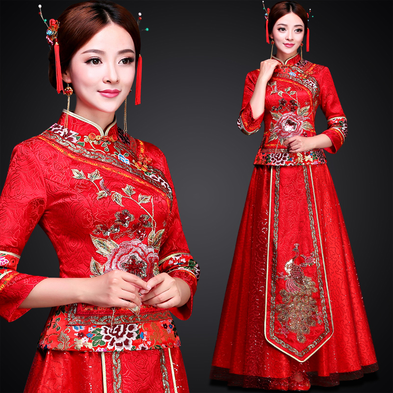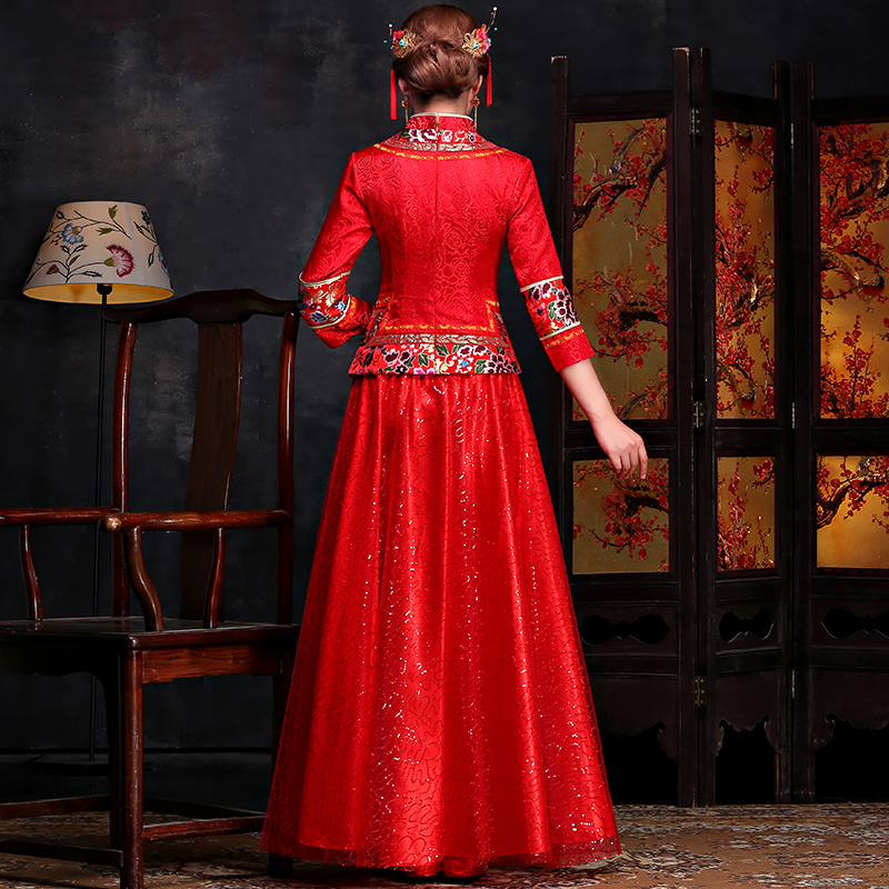 • 秀禾服2017新款秋冬长袖新娘敬酒服旗袍嫁衣中式结婚晚礼服龙