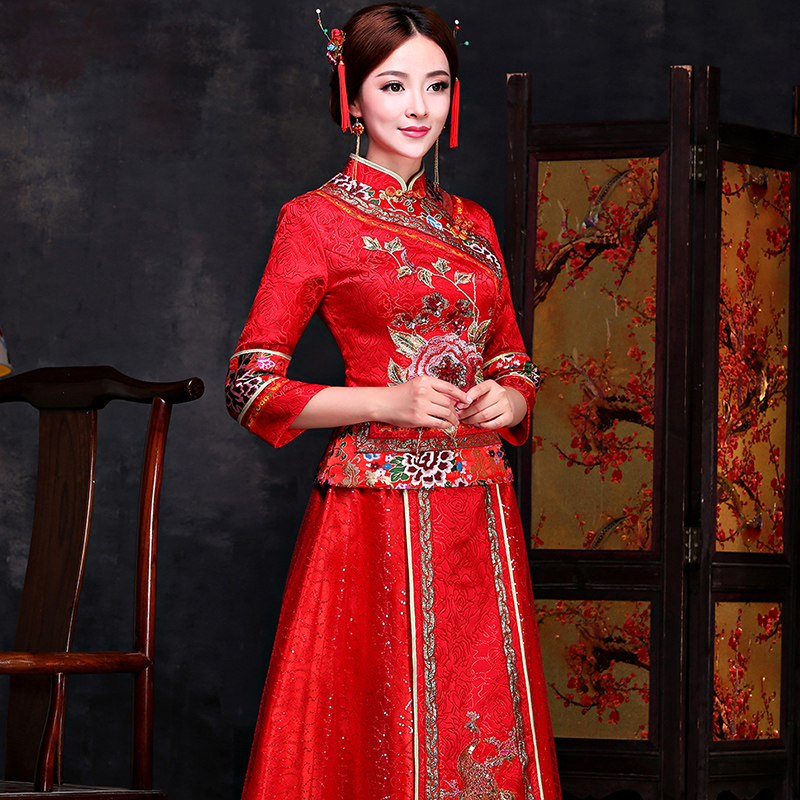 秀禾服2017新款秋冬长袖新娘敬酒服旗袍嫁衣中式结婚晚礼服龙