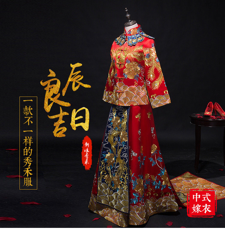 • A8秋冬中式结婚礼服新娘敬酒服旗袍结婚喜服嫁衣秀禾
