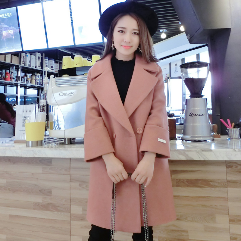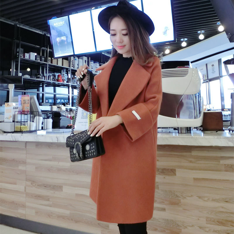 • 毛呢外套女中长款韩国2017秋冬季新款韩版显瘦加厚收腰呢子大