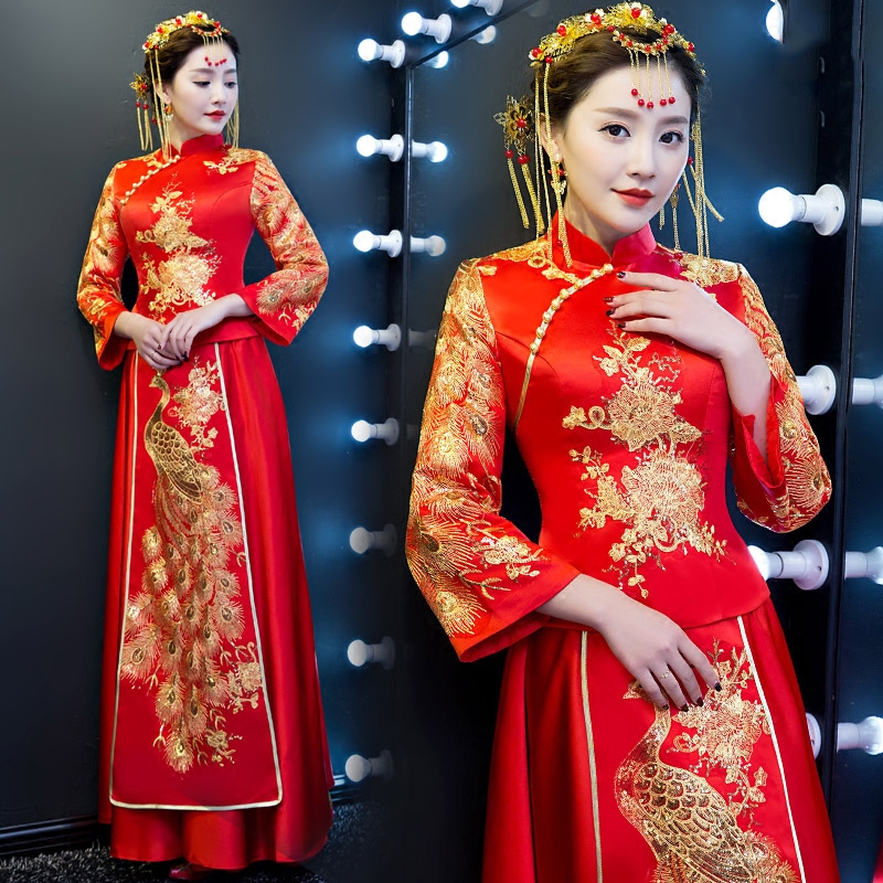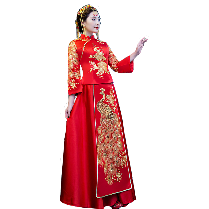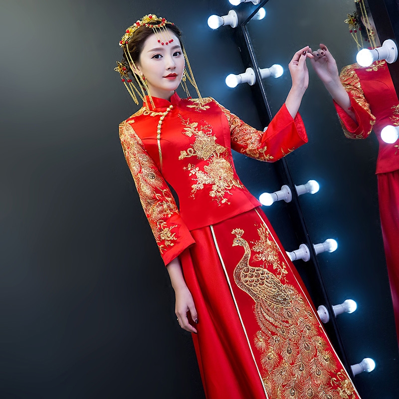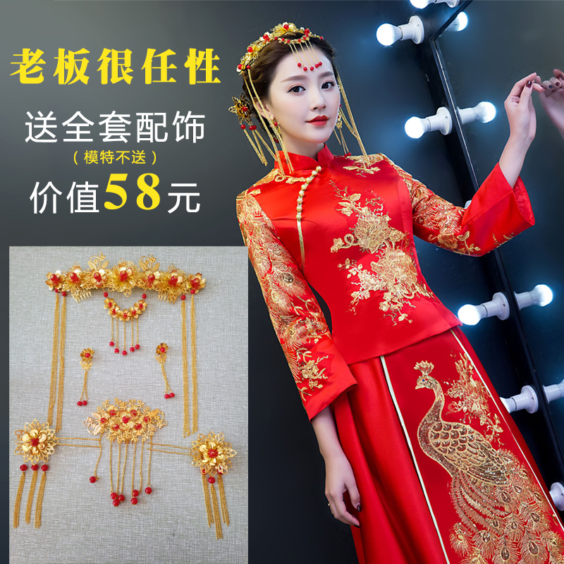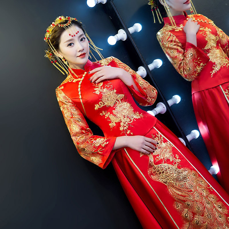 中式婚纱秀和服敬酒服结婚礼服红色秀禾服新娘旗袍改良新款冬季