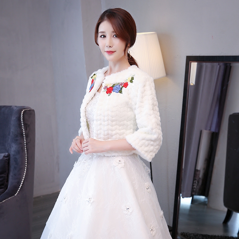 • 2017新款保暖毛披肩外套加厚旗袍伴娘新娘婚纱礼服披肩女长袖