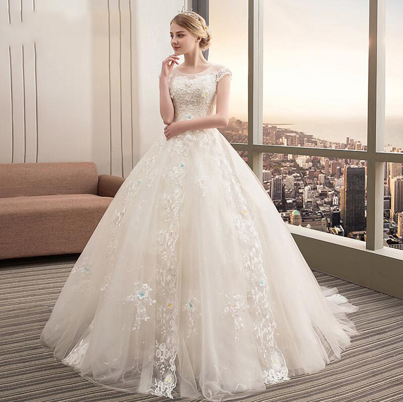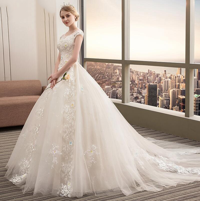 • 新款轻婚纱礼服2018新款浪漫花朵蕾丝小拖尾婚纱旅拍宴会礼服