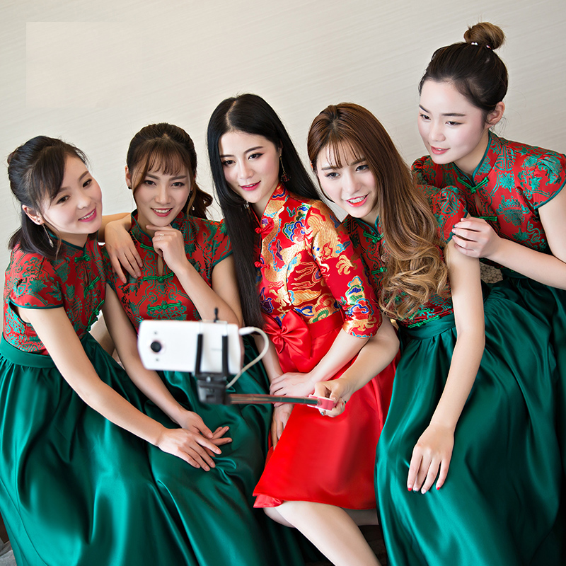 • 新款伴娘服  新款中式伴娘服修身改良版复古礼服中长款