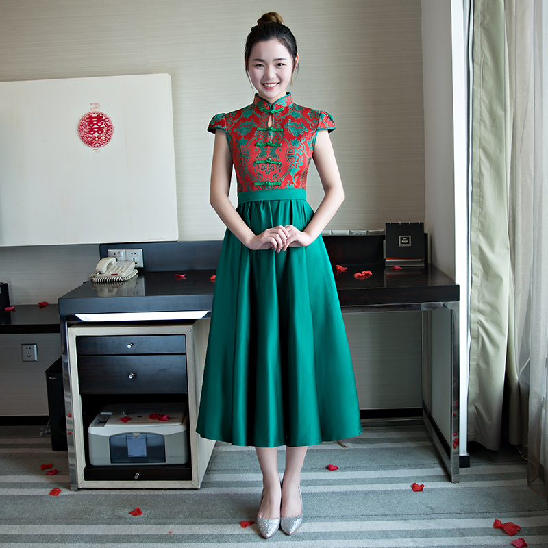 新款伴娘服 新款中式伴娘服修身改良版复古礼服中长款