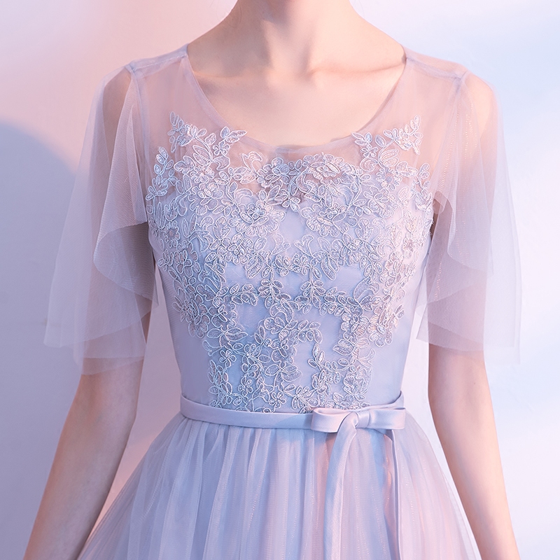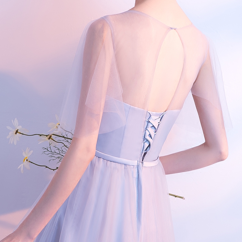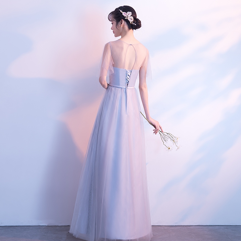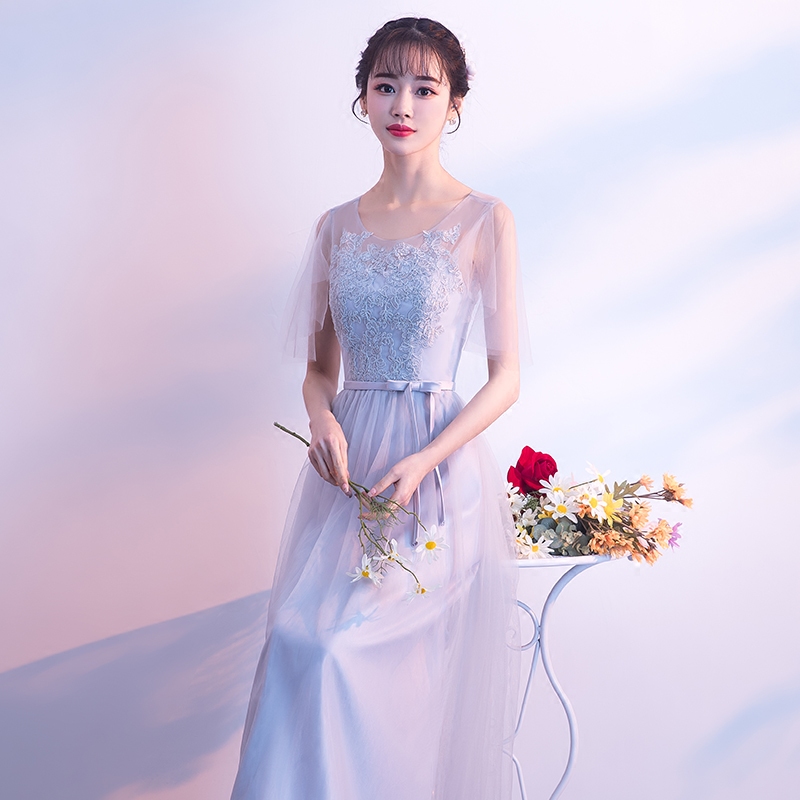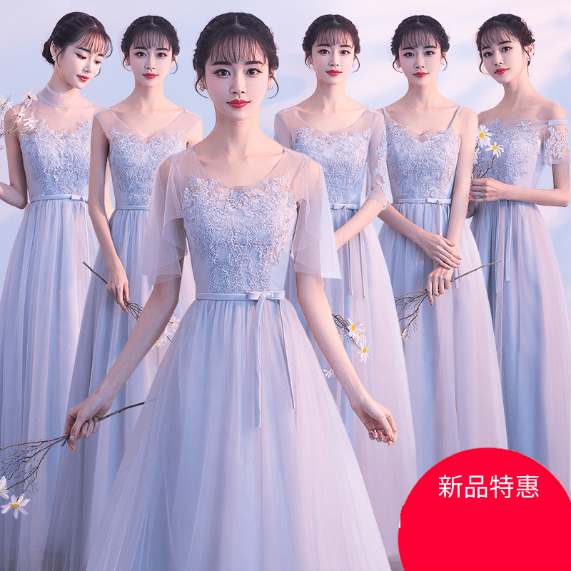 • 2018新款韩版伴娘礼服姐妹团显瘦长款灰色宴会晚礼