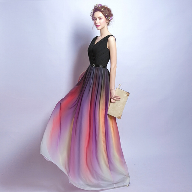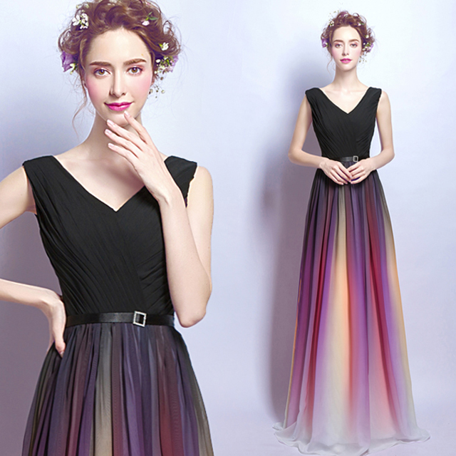 • 渐变色性感深v领晚宴年会演出长款婚纱新娘结婚敬酒晚装礼服