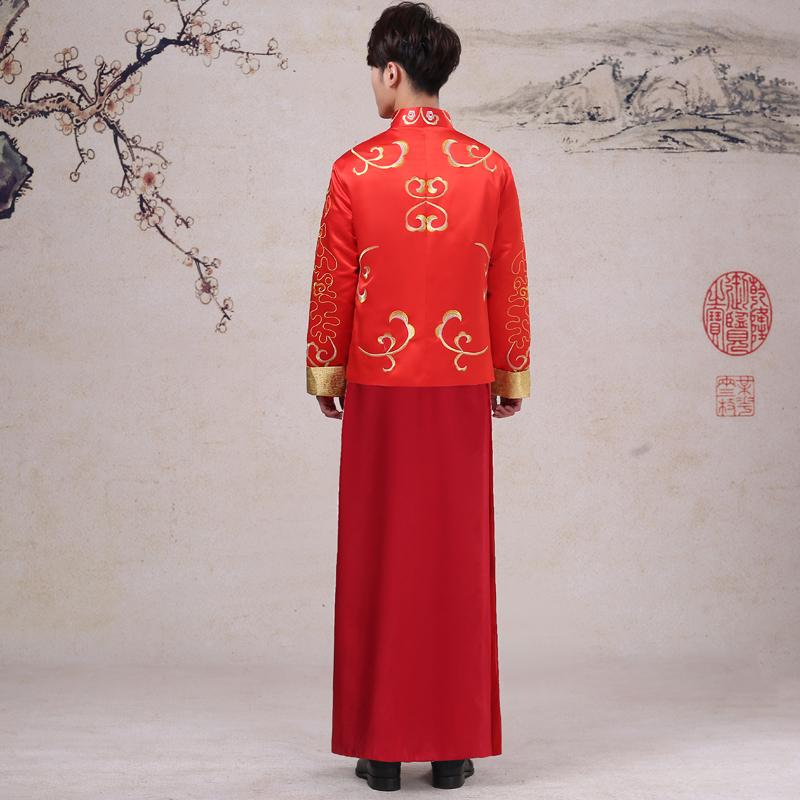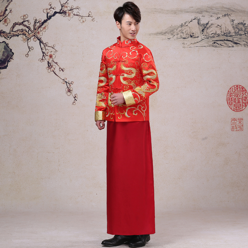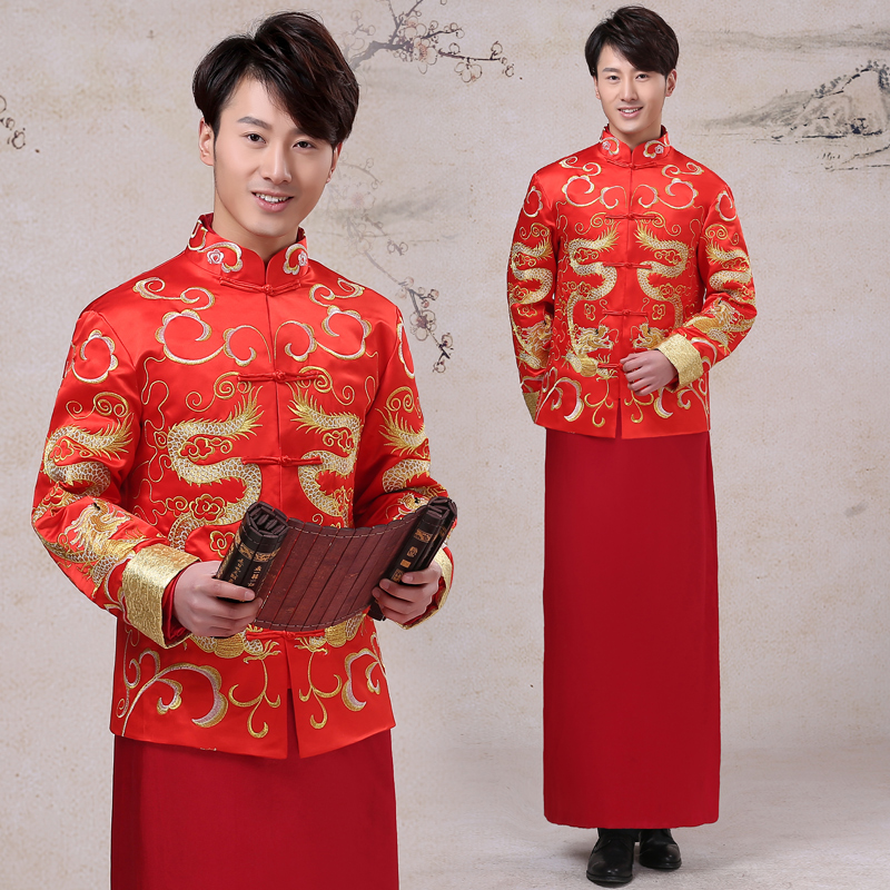 • 明星同款新郎中式结婚礼服龙纹修身大码敬酒服唐装秀禾服男装喜服
