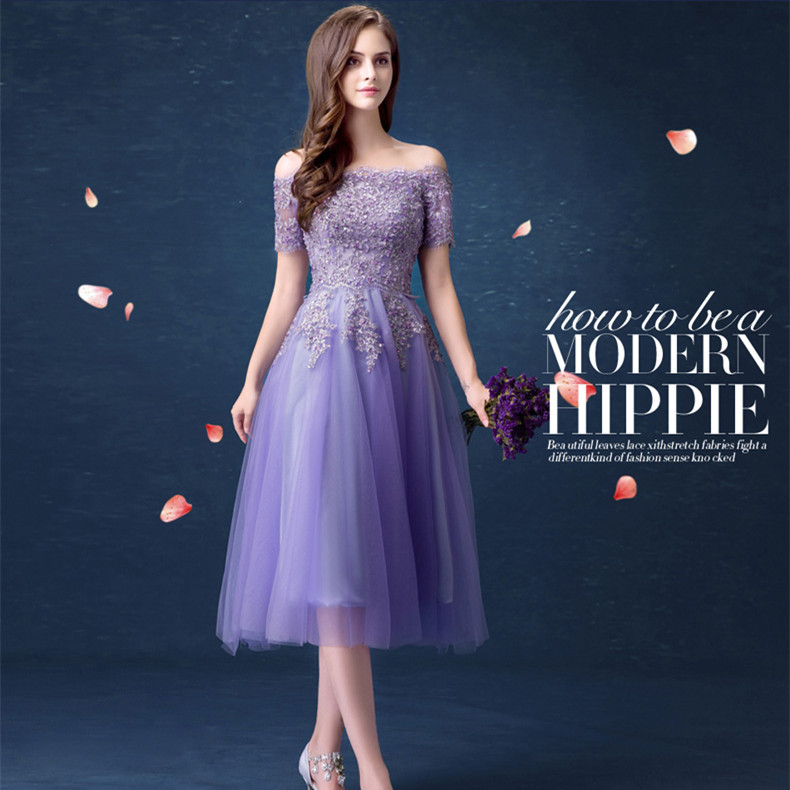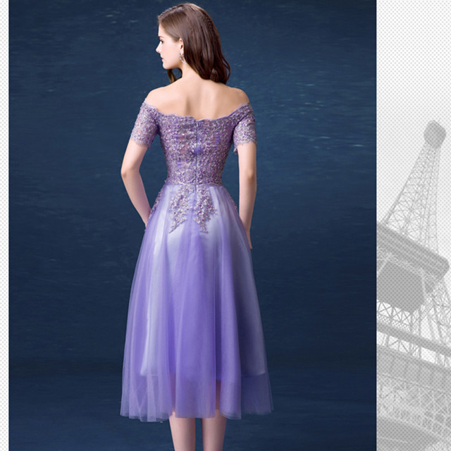 • 紫色新娘敬酒服伴娘服短款晚宴年会婚纱小礼服春季新款