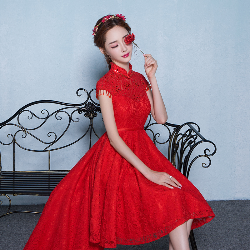 • 红色敬酒服新娘旗袍