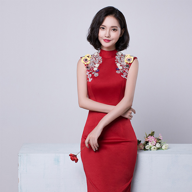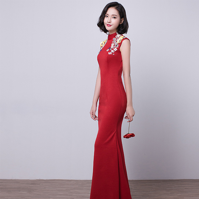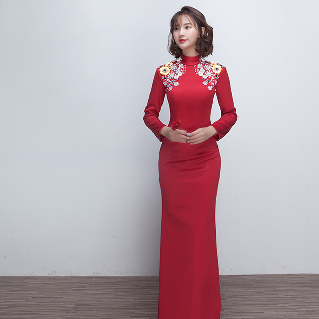 新娘敬酒服长款2016新款冬结婚宴会晚礼服鱼尾修身中式旗袍连