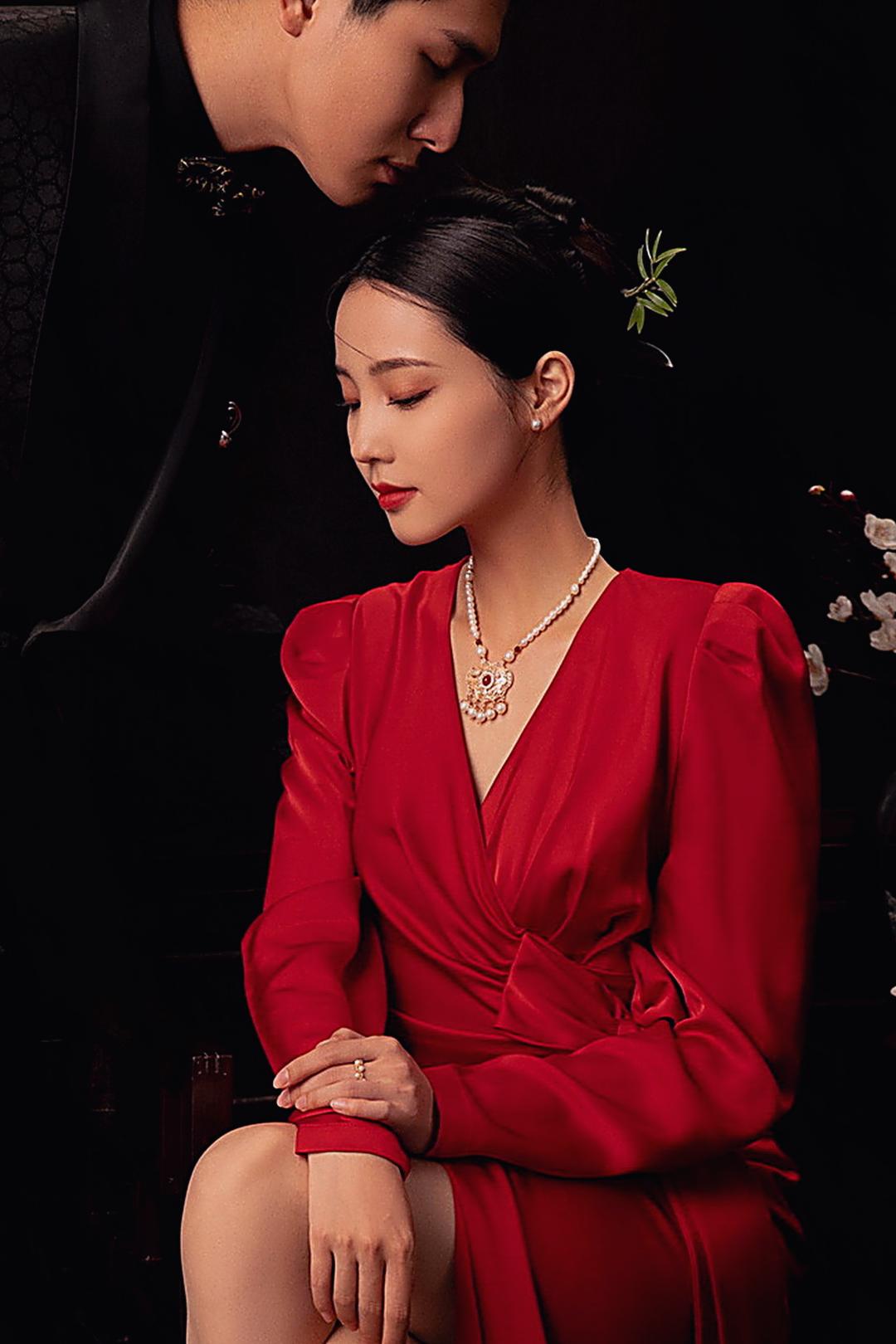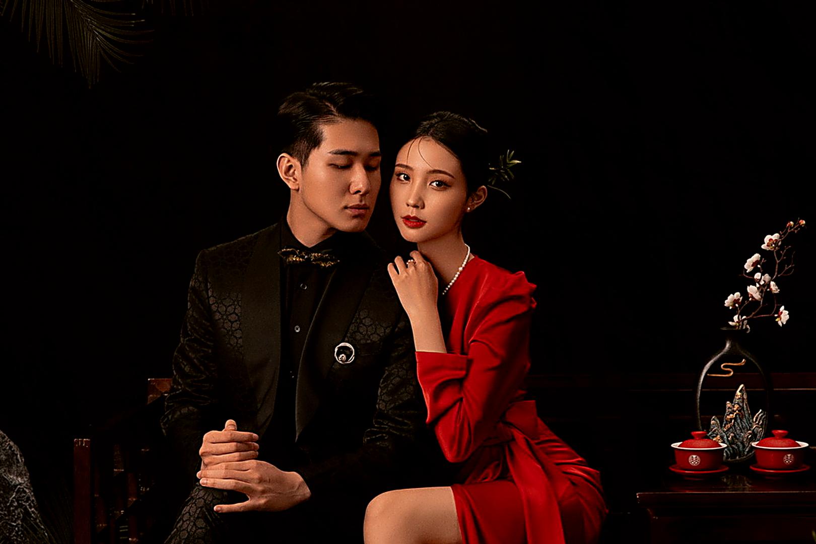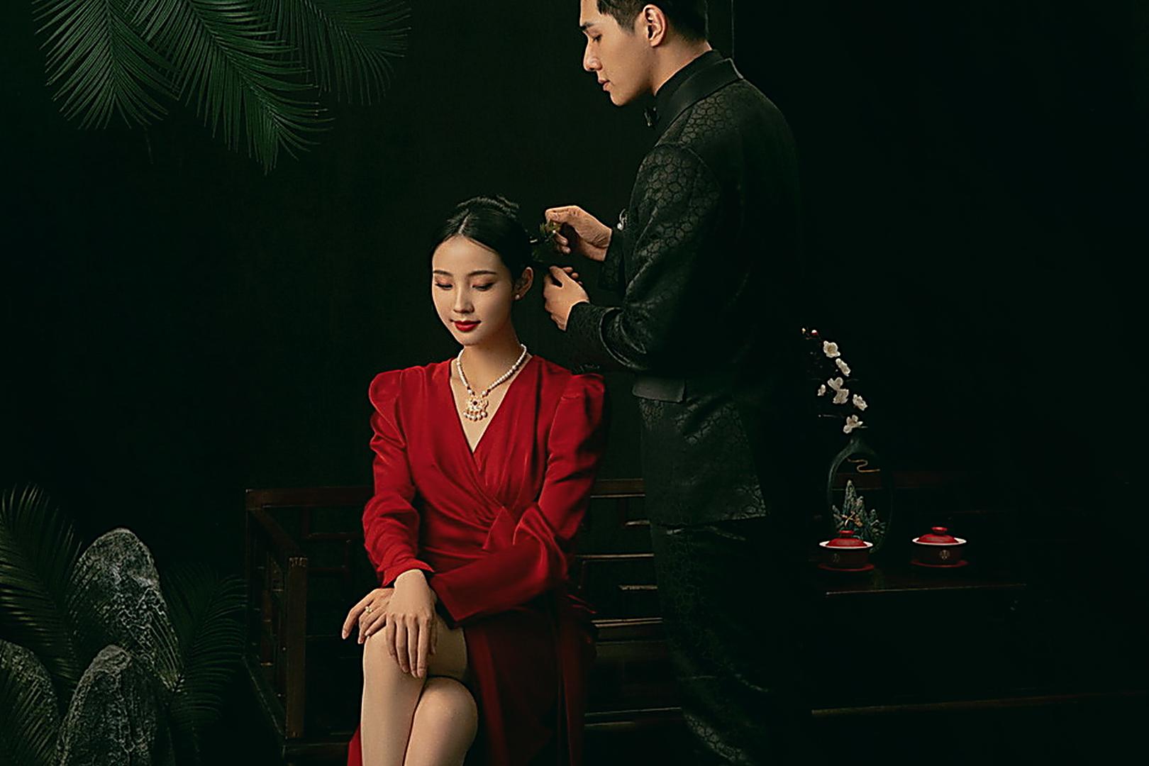复古光影红底婚纱照❤️