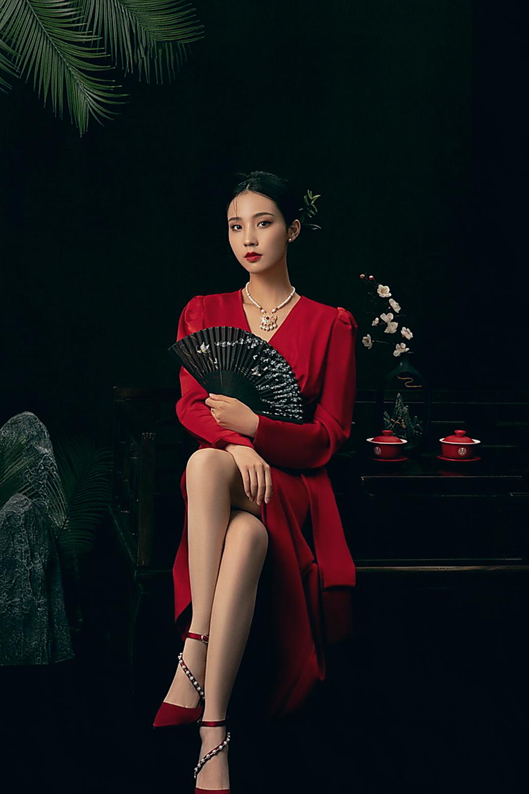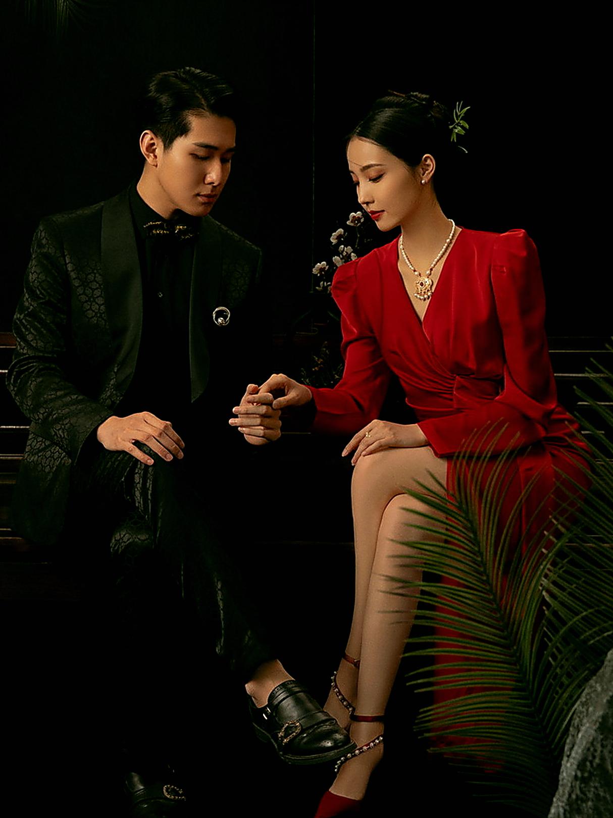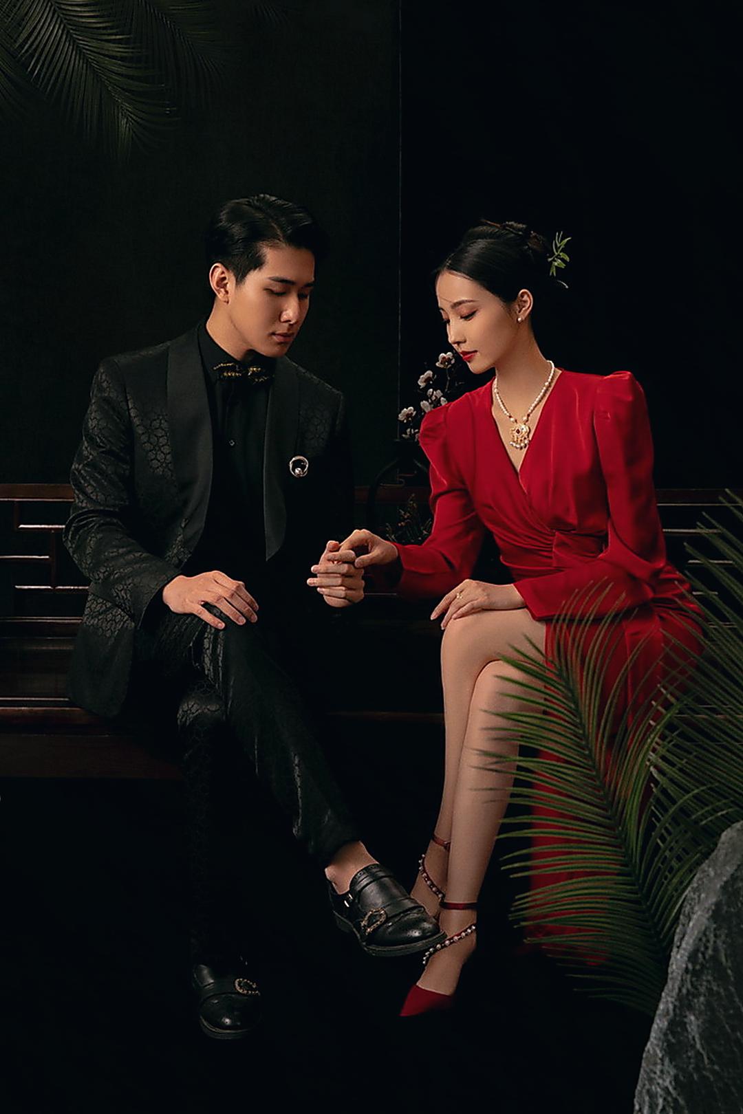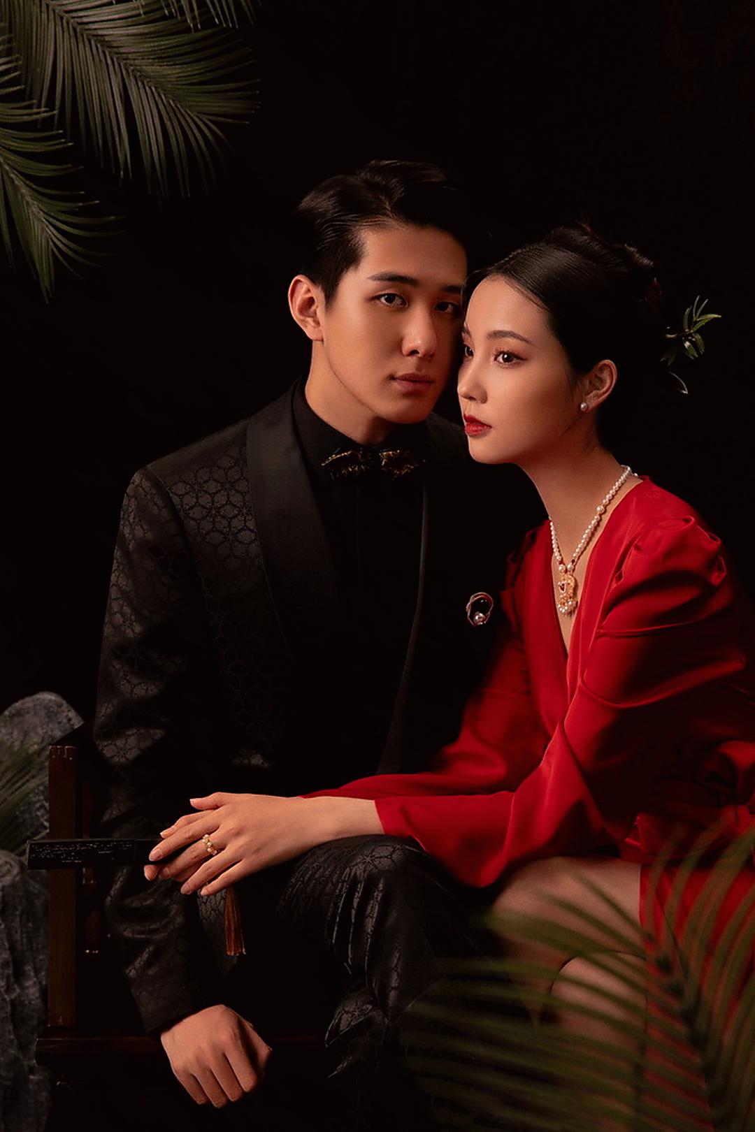 复古光影红底婚纱照❤️