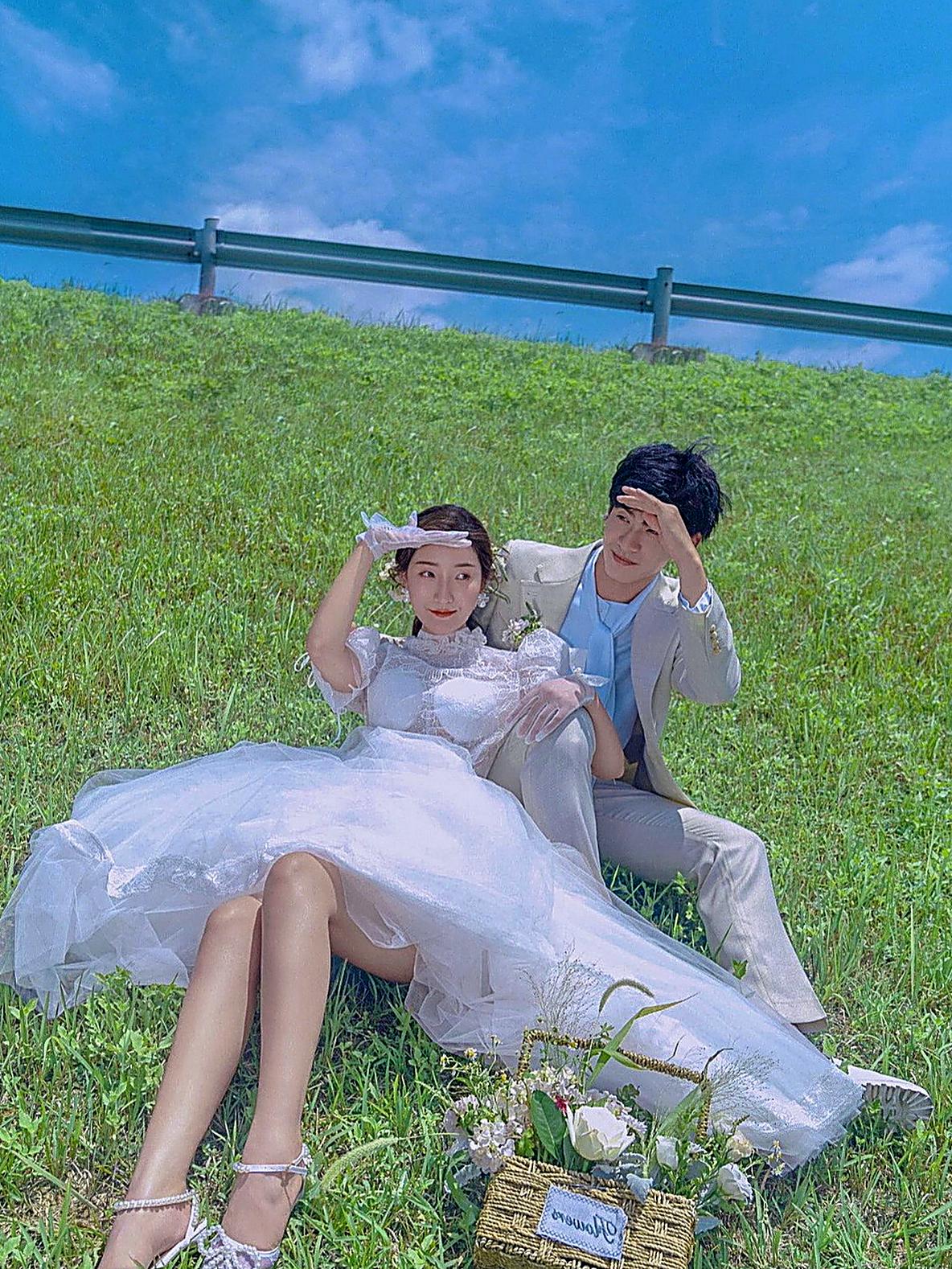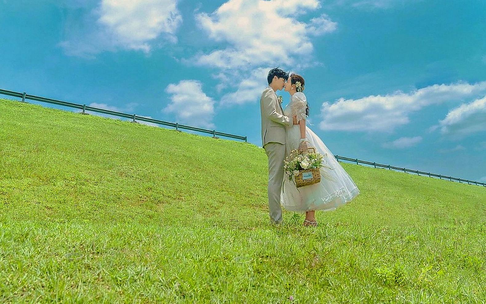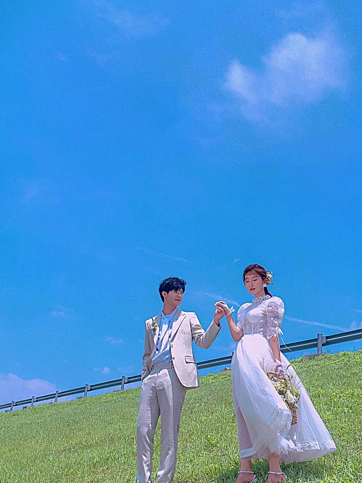 江边浪漫白纱婚纱照❤️